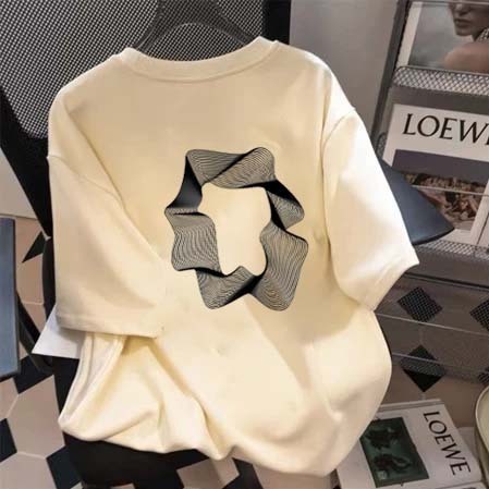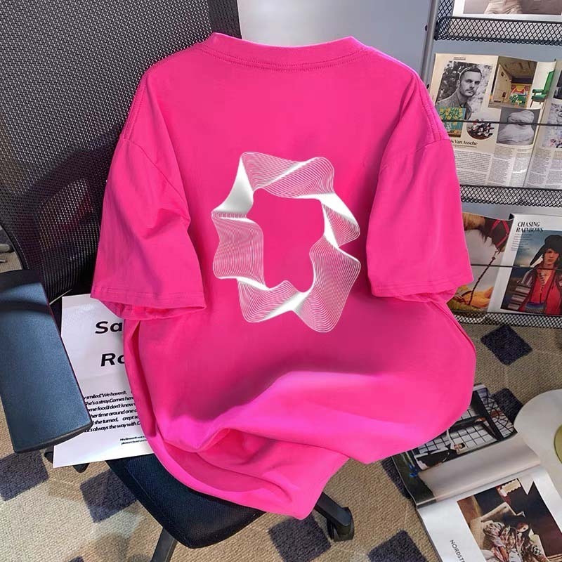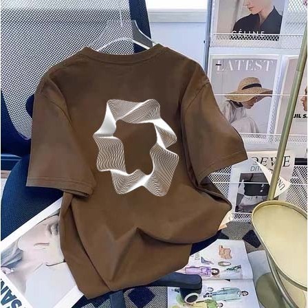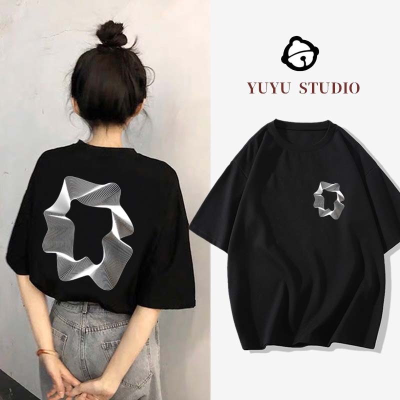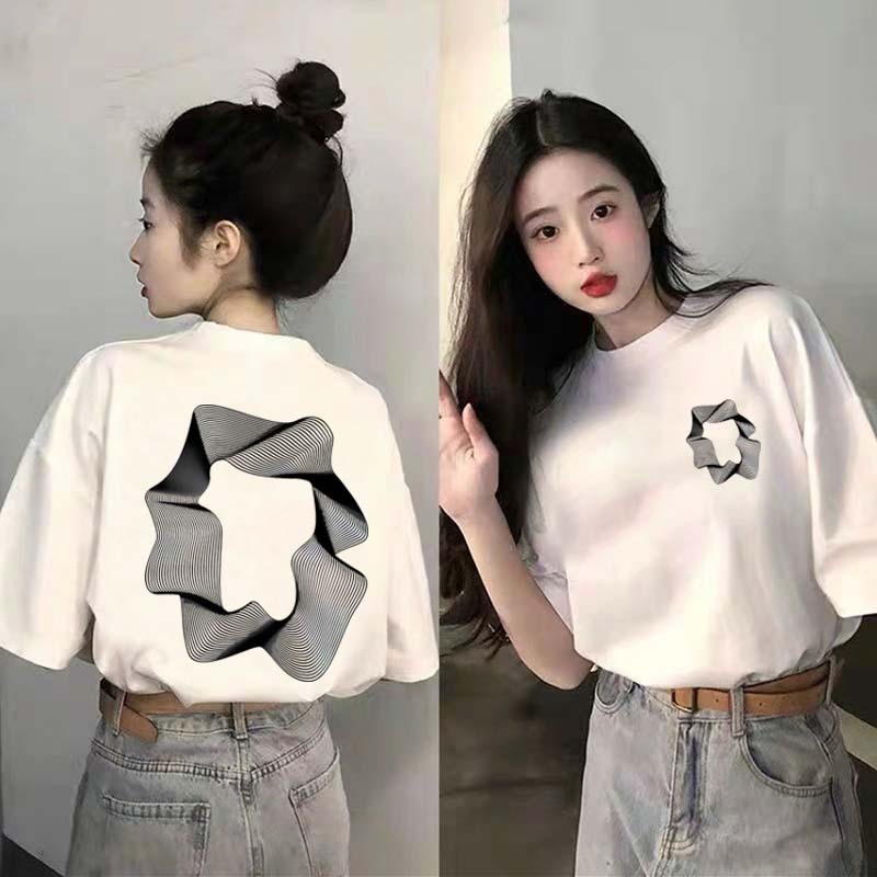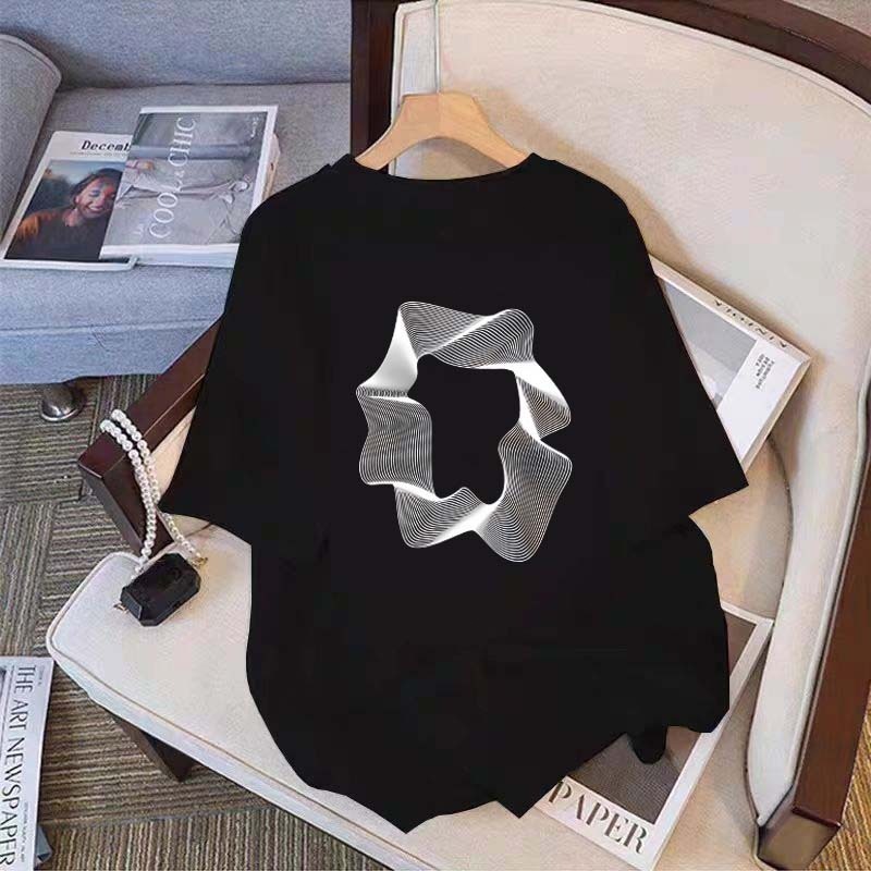 YUYU STUDIO Desain gaya Amerika garis pola bentuk geometris cetak T-shirt | Kaos Wanita Premium Tebal | Baju Oversize Wa