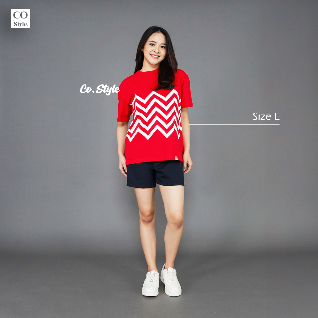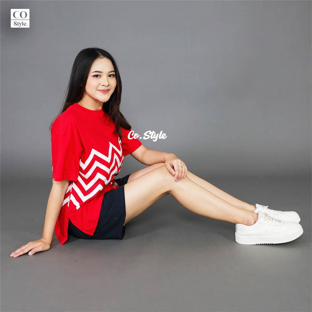 Co.Style Oversize Highslit Leevy/Zeea | Baju Atasan Wanita Kaos Belah Samping Katun Line/Zigzag