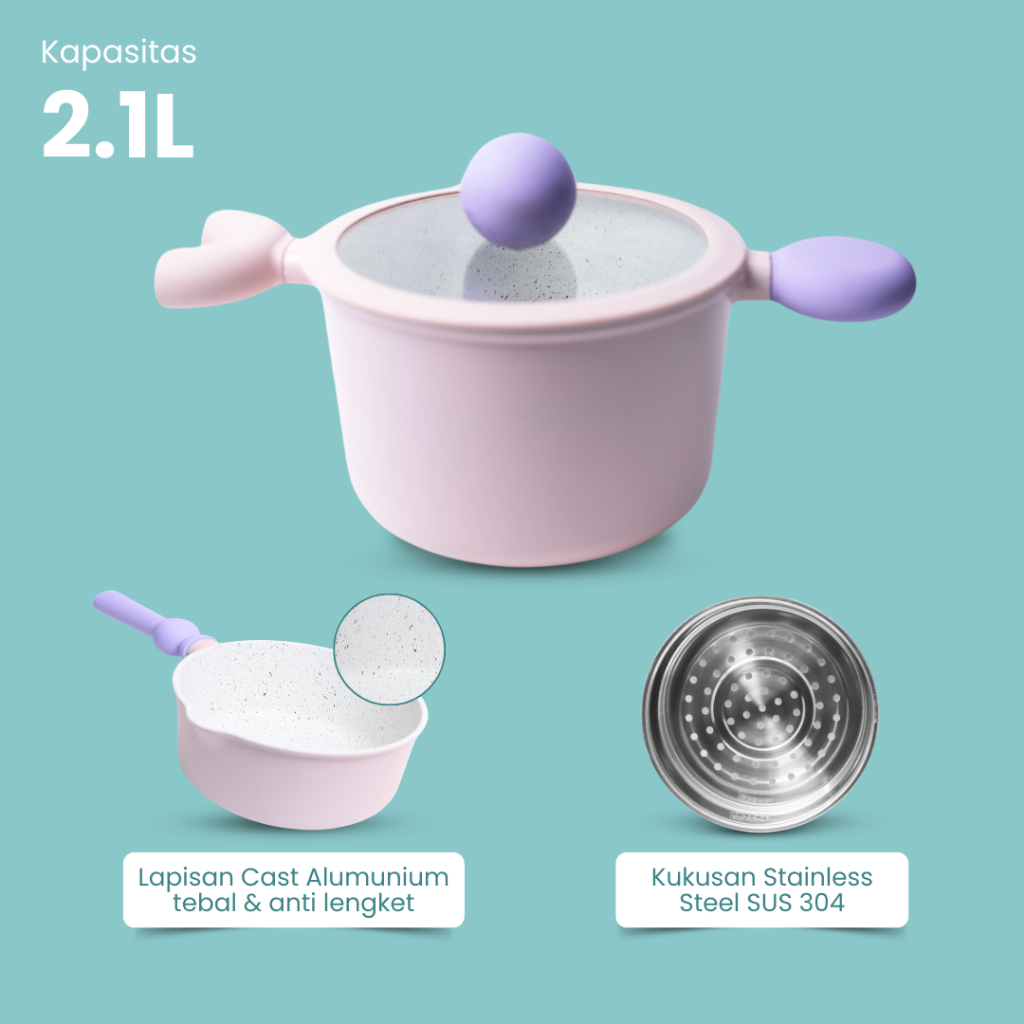 FUNNYCOOK Panci Susu Marble Korea Anti Lengket Panci Mie Milk Pot Sauce Pan 18cm Warna Pink