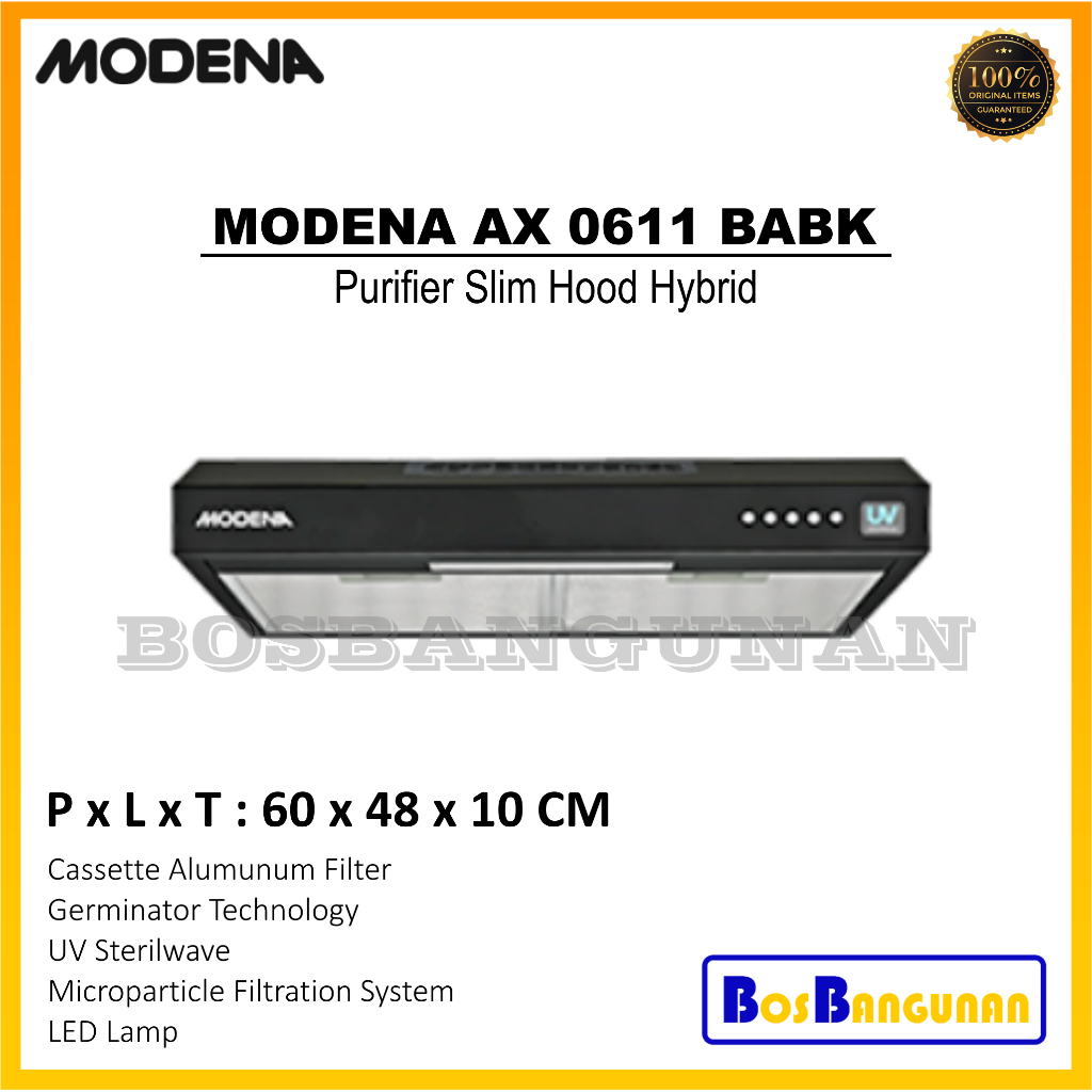 Cooker Hood MODENA AX 0611 BABK / Purifier Slim Hood Hybrid MODENA / Cooker Hood MODENA UV / Penghisap Asap Dapur