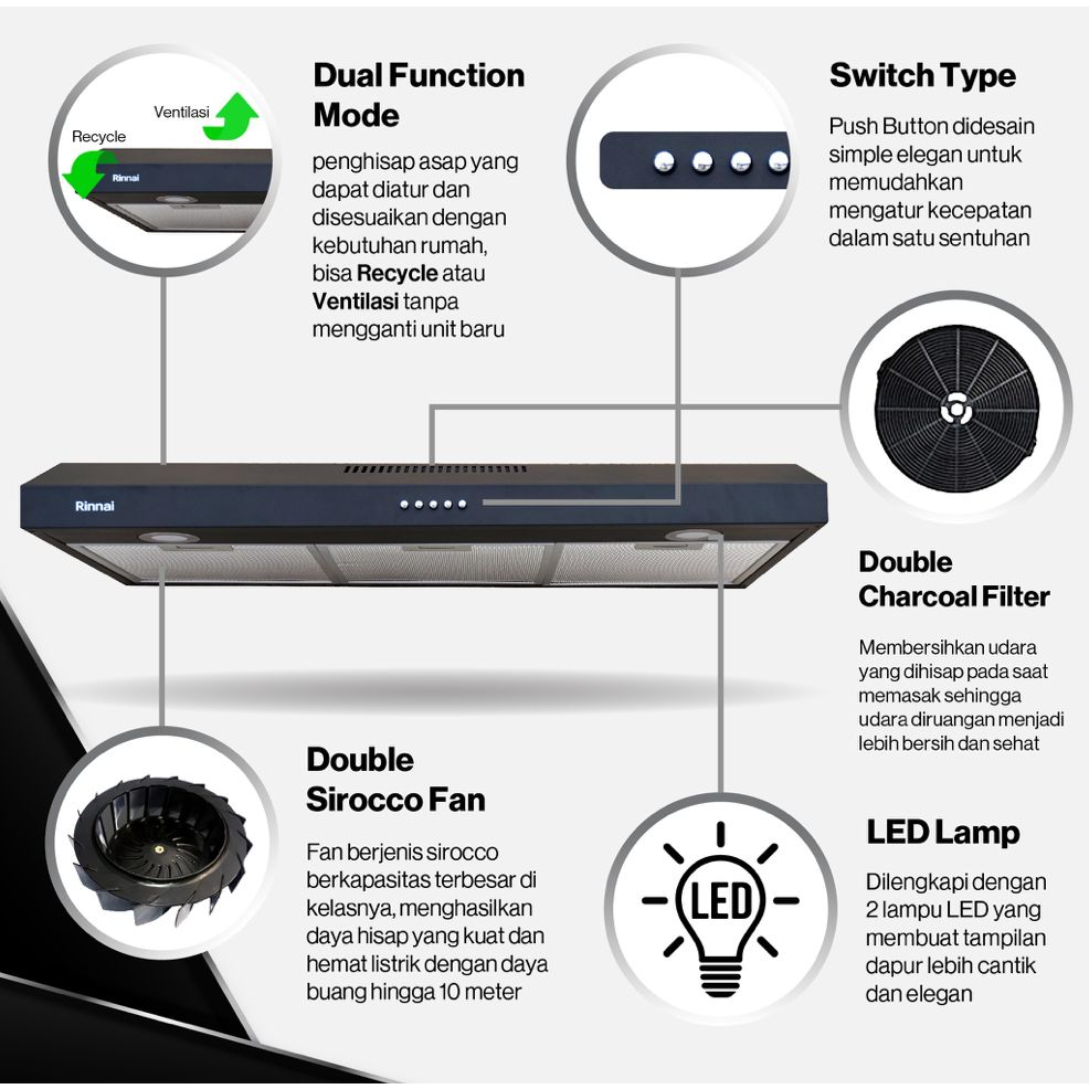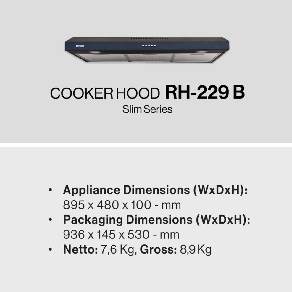 Cooker Hood Rinnai RH-229B Slim Hood - Penghisap Asap Dapur Tudung Hisap / Cooker Hood Rinnai RH-127 B // RH127B // RH 1
