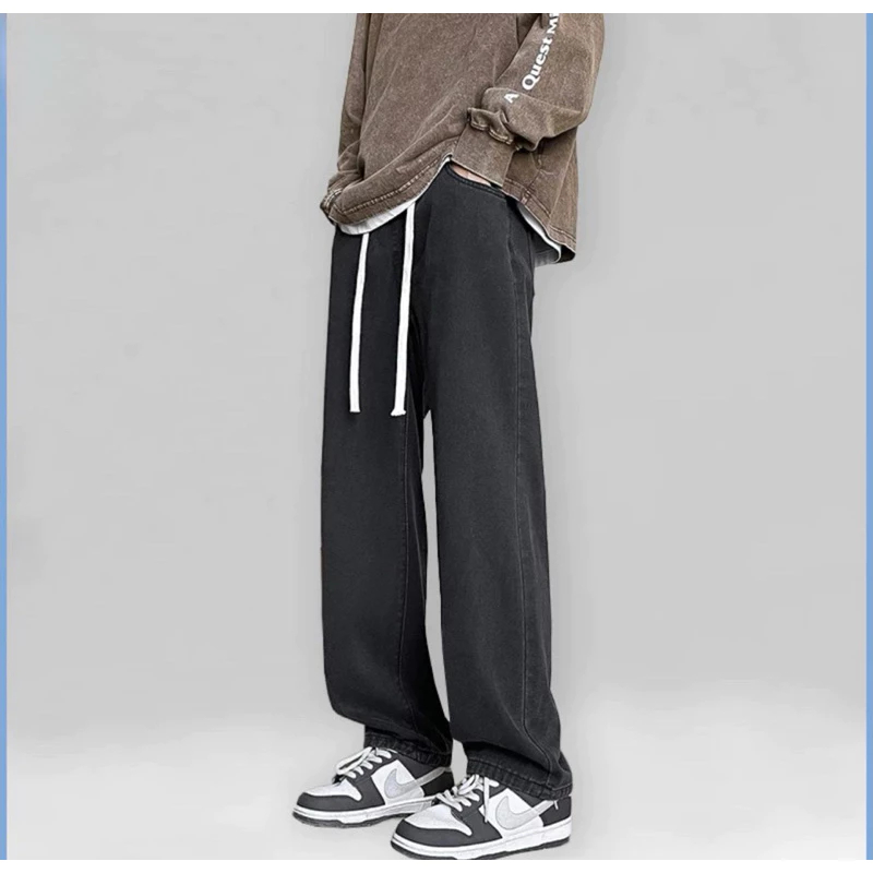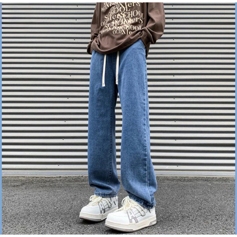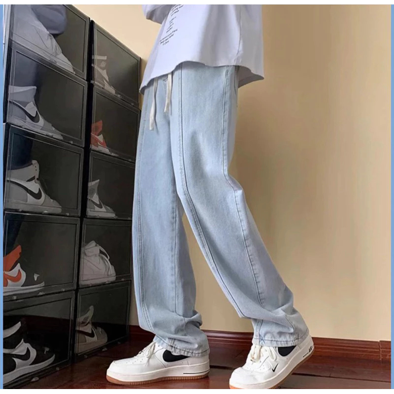 celana jeans pria pinggang karet korean style loose pants kulot jeans biru muda oversize Jumbo