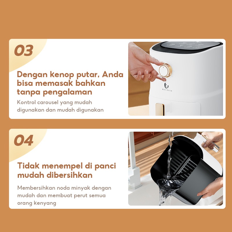 HAN RIVER Air Fryer 3.5L Air Fryer Low Watt 500W Penghangat Makanan HRAF04