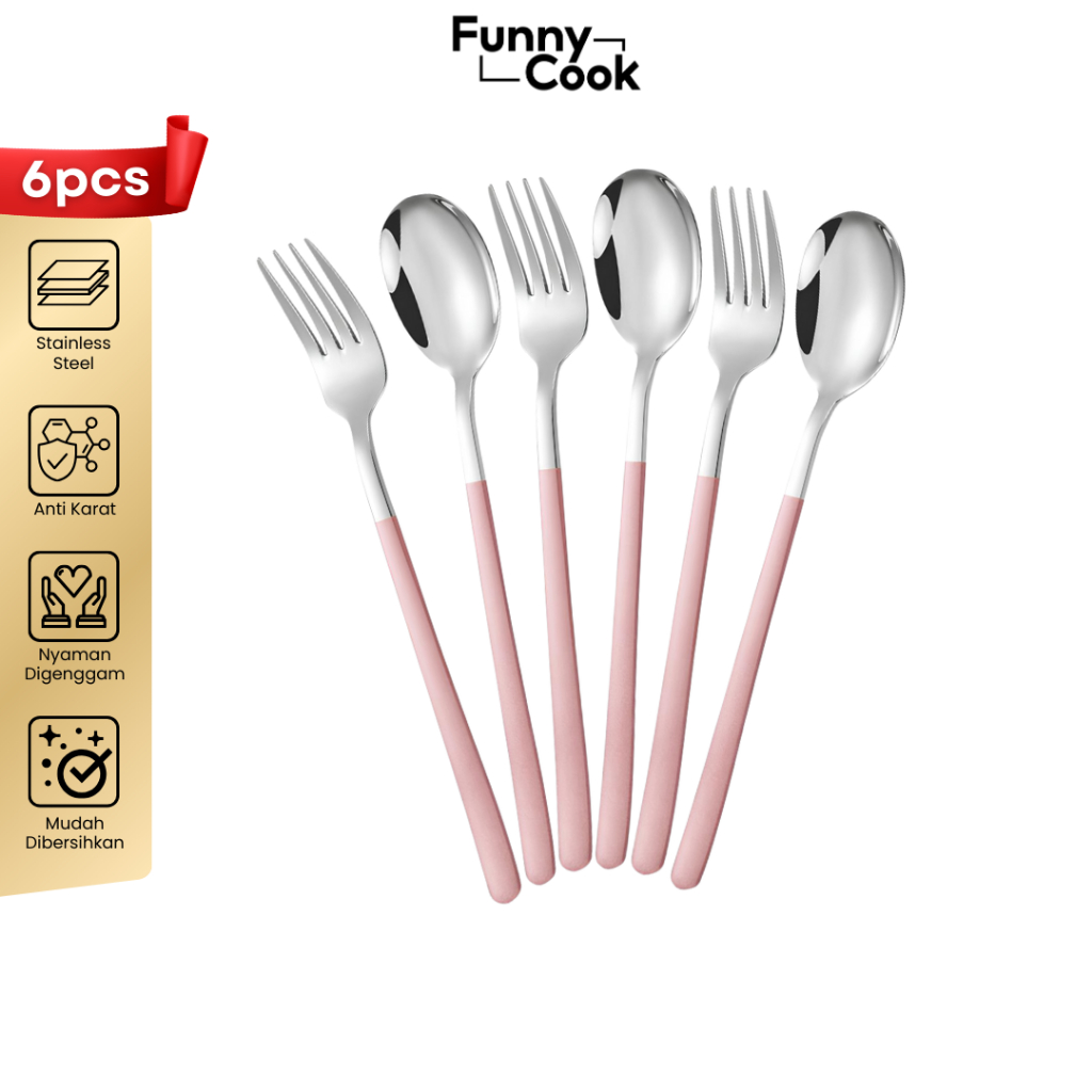 FUNNYCOOK Sendok Garpu Set Stainless Sujeo Korean Alat Makan Korea Tebal Warna Warni - Pink