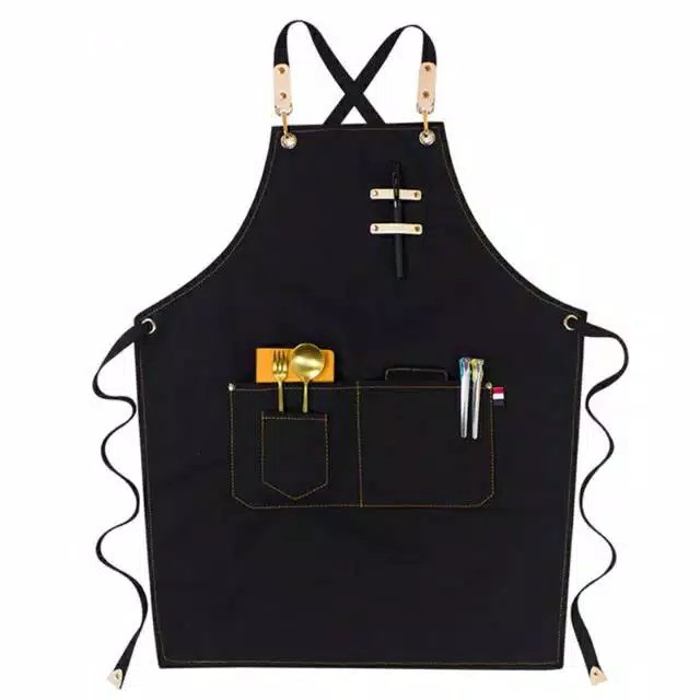 BP DAPUR KANVAS KATUN UNTUK WANITA PRIA APRON KERJA PANGGANGAN RESTORAN BAR TOKO KAFE