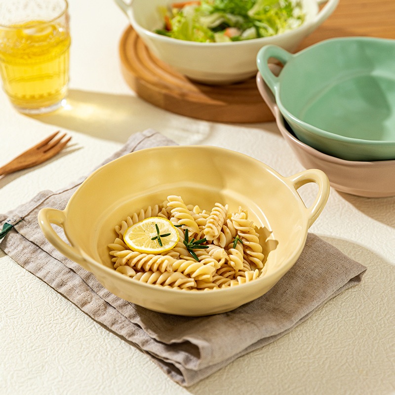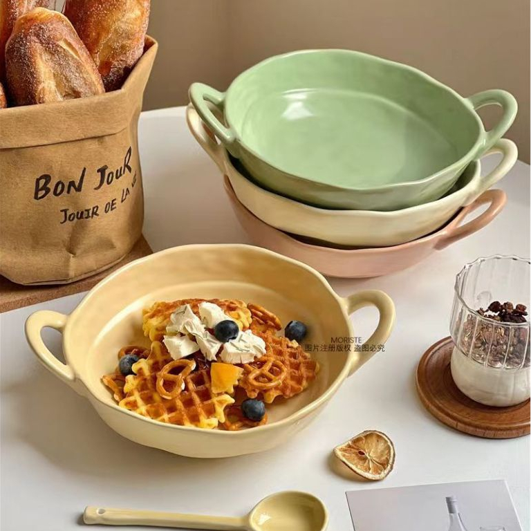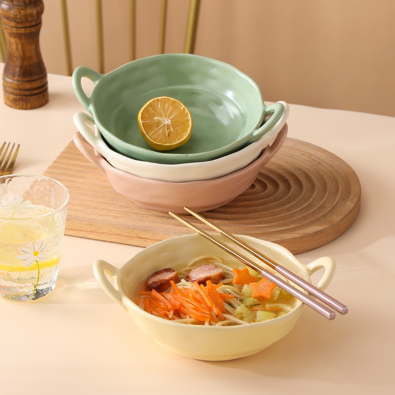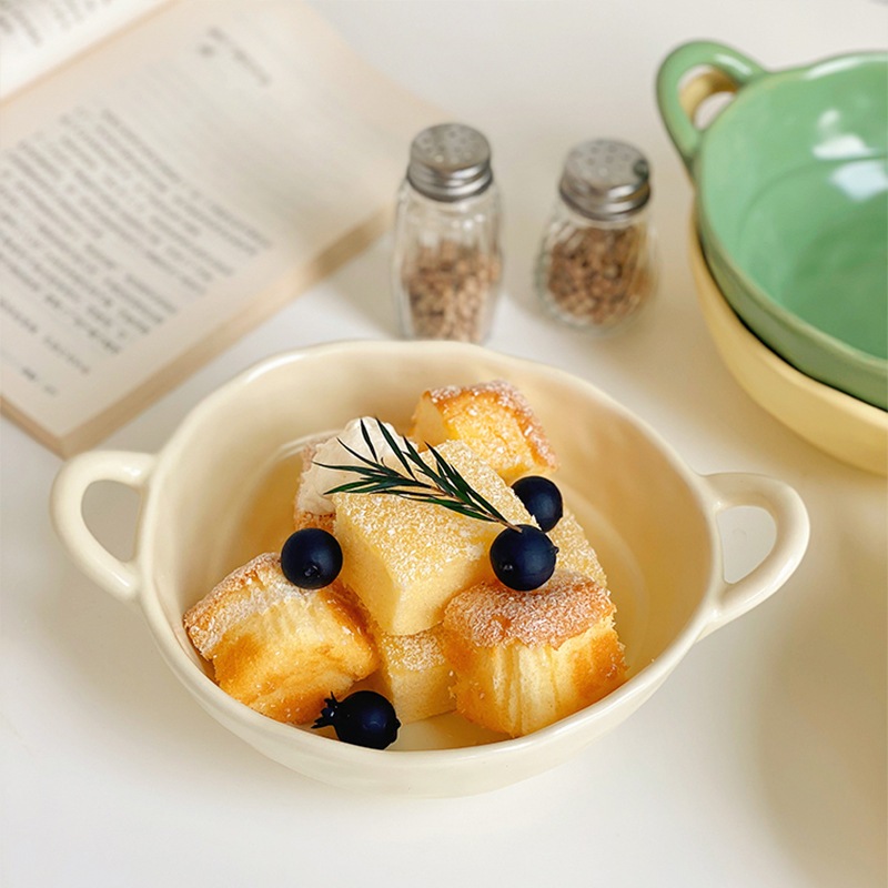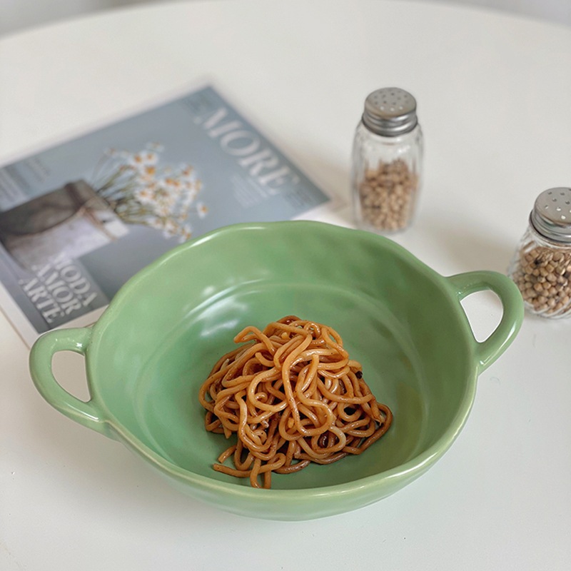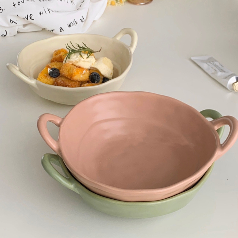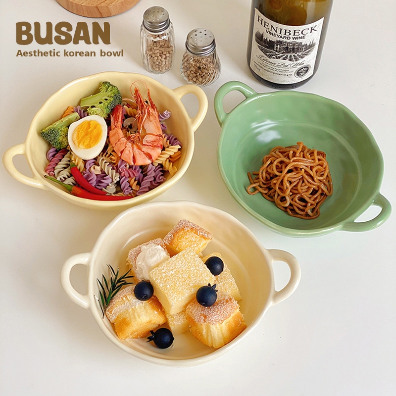 BUSAN Double Ear Bowl Aesthetic Korean Tableware Mangkuk Panci Keramik Handle Korea / Mangkok Keramik Saji