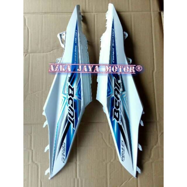COVER BODY SAMPING HONDA BEAT FI ESP TAHUN 2015 WARNA PUTIH STRIPING BIRU SEPASANG HARGA TERMURAH