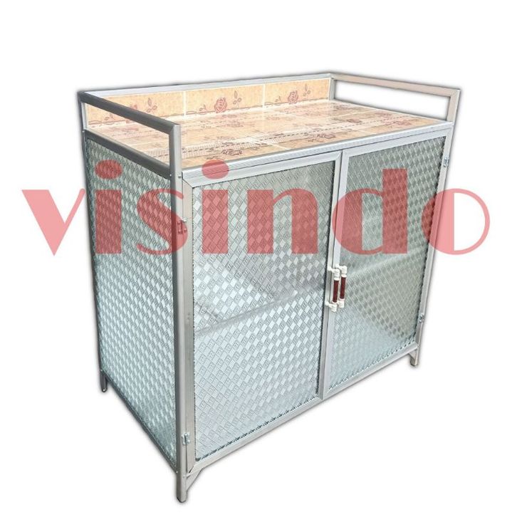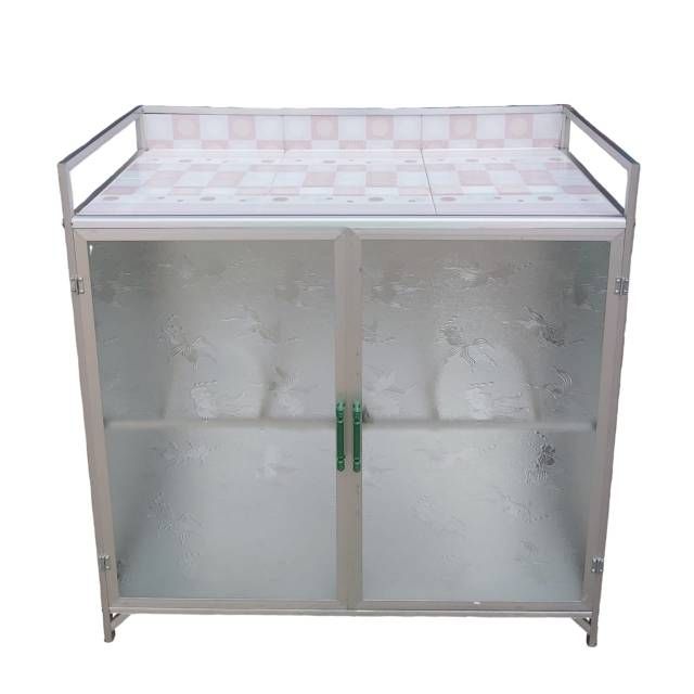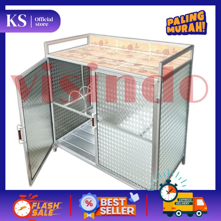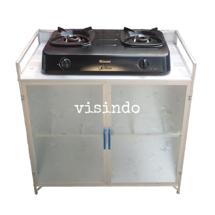 RAK KOMPOR 2 TUNGKU PLUS RAK PIRING ALUMUNIUM KERAMIK 2 PINTU