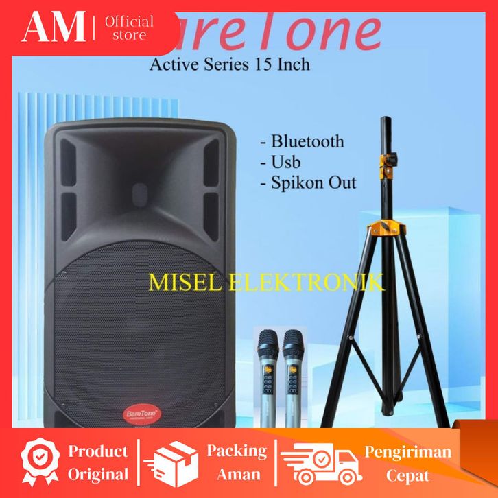 Salon Aktif Bluetooth Full Bass Speaker Aktif 15 Inch BareTone MAX15RAE With Two Wireless Microphone bluetoothnya