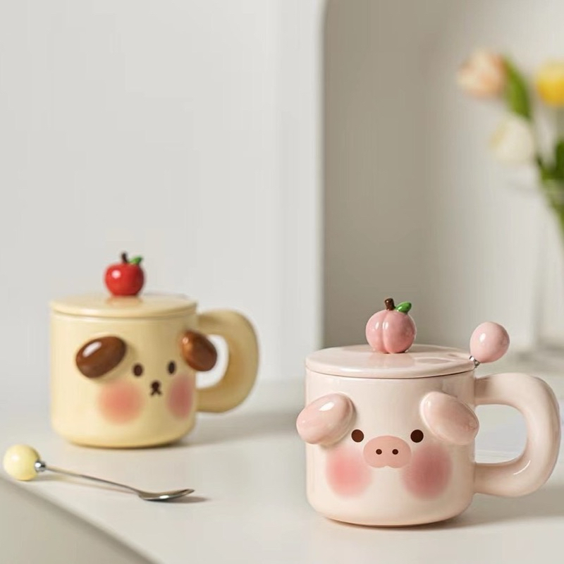 Piggy & Doggy mug bowl | Gelas cangkir mug teh kopi mangkok serbaguna keramik lucu premium