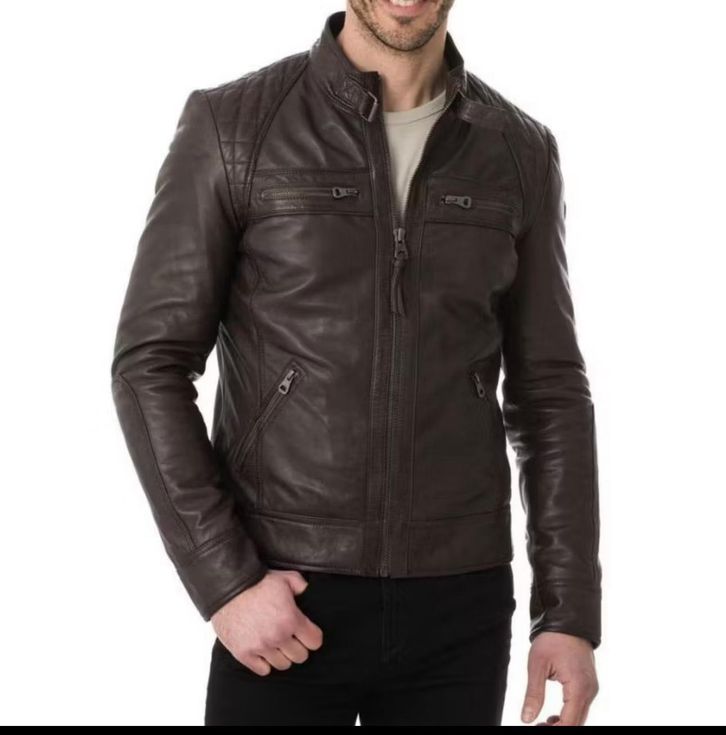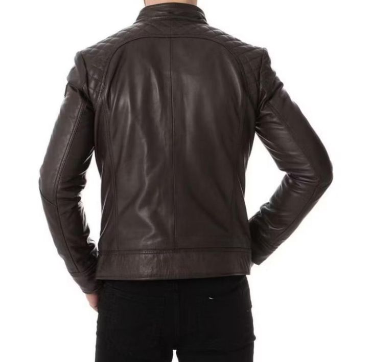 JAKET KULIT ASLI DOMBA | JAKET KULIT PRIA ORIGINAL DENGAN MOTIF JAHITAN DI DADA DAN PUNGGUNG