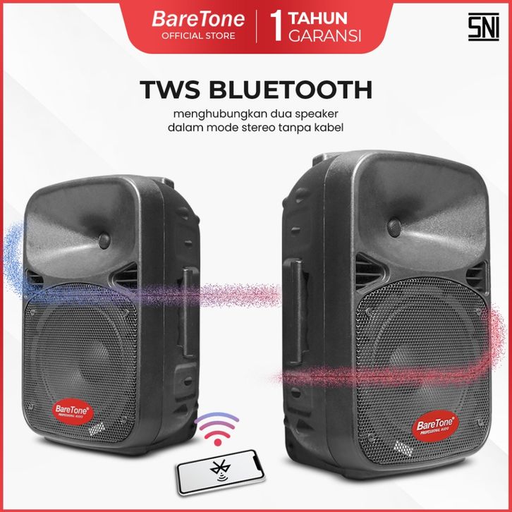 BareTone Speaker Portable MAX08EB Speaker Bluetooth 8 Inch Mini Portable Support Micro SD & USB - CARGO