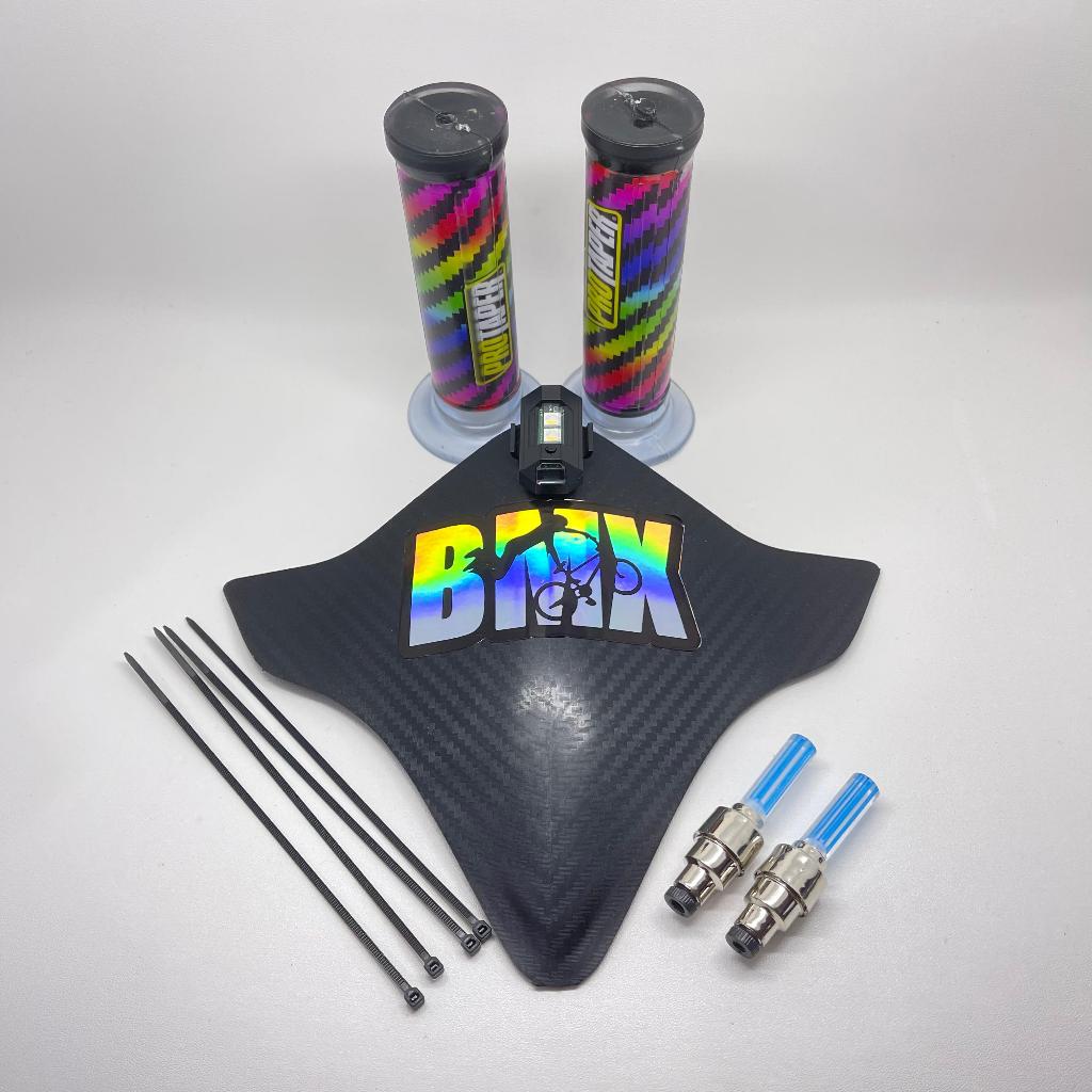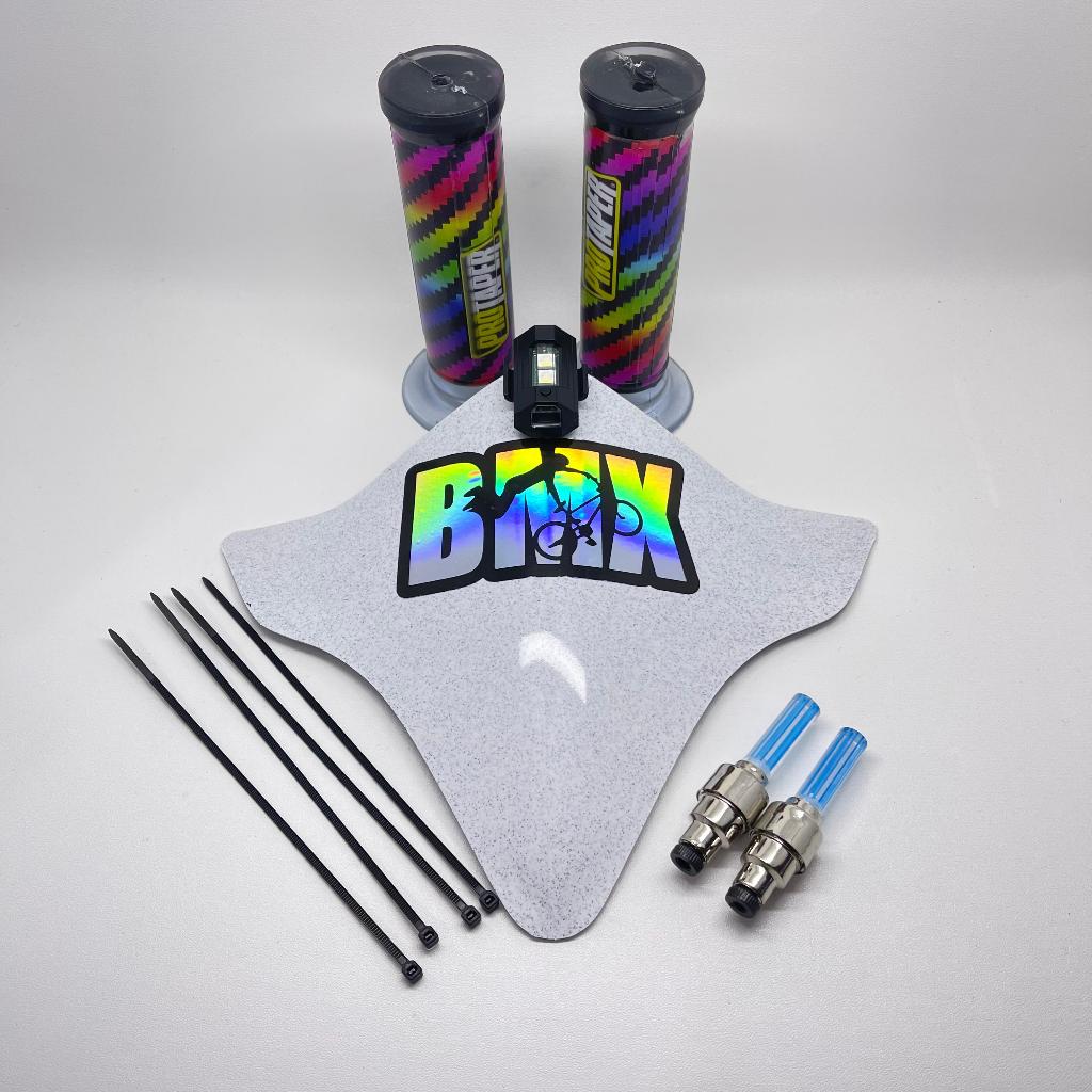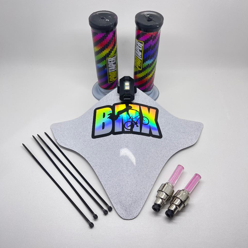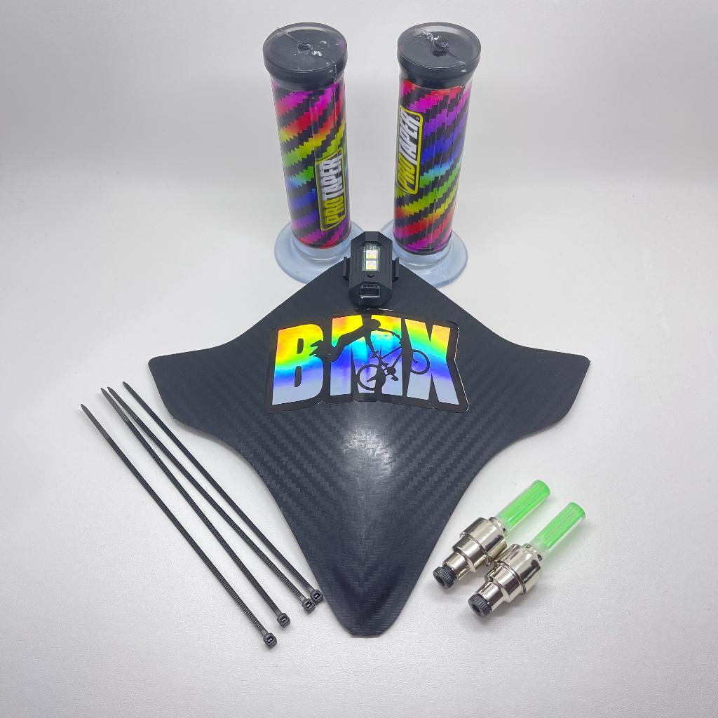 Paket Komplit Visor Sepeda BMX + Stiker Hologram BMX + Lampu Tempel + Lampu Tutup Pentil Nyala + Handgrip Pelangi
