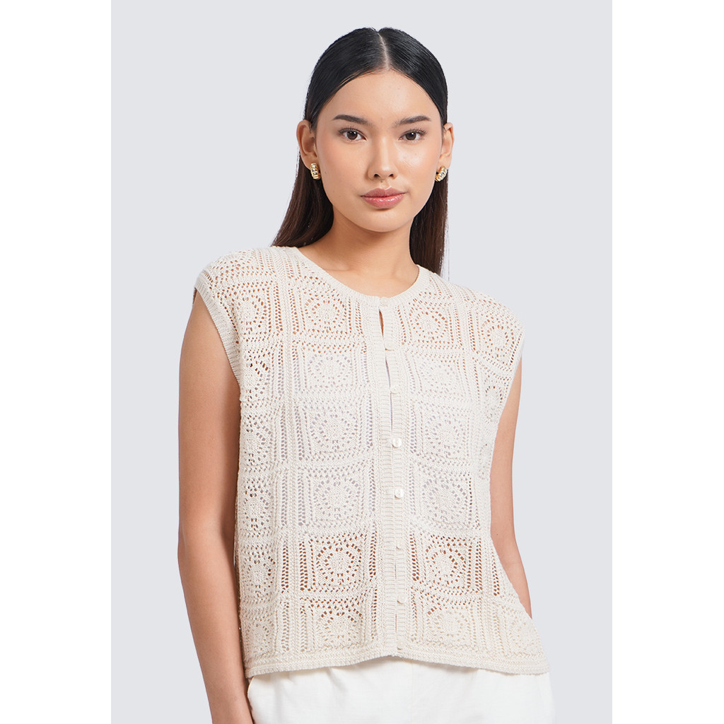 Et Cetera Round Neck Knit Vest ECRU Original Best Seller Official Store