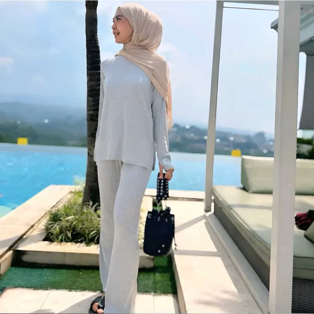 One Set Wanita PENE SET Setelan Rib Knitt Model Cutbray Terbaru Setelan Wanita Kekinian One Set Knit