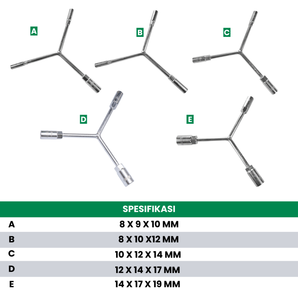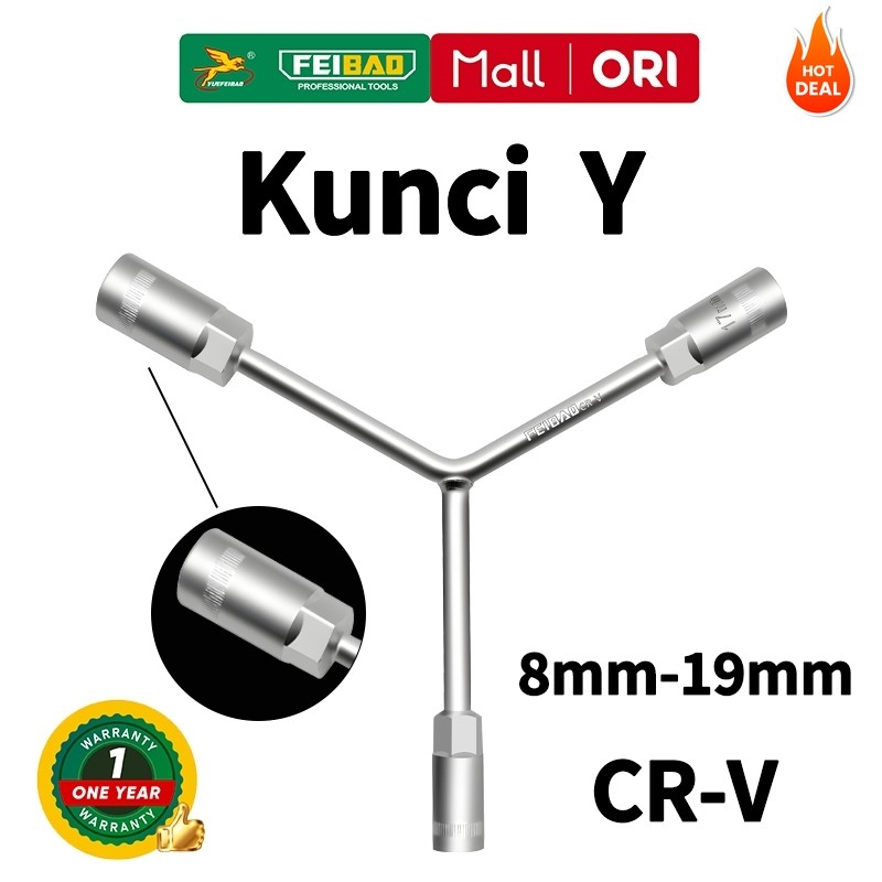 Feibao Kunci Sok Y Ukuran 8x9x10x12x14x17x19mm Kunci Y 3 Arah Alat Perkakas Kunci Ban Hand Tools CR-V Premium Kuat