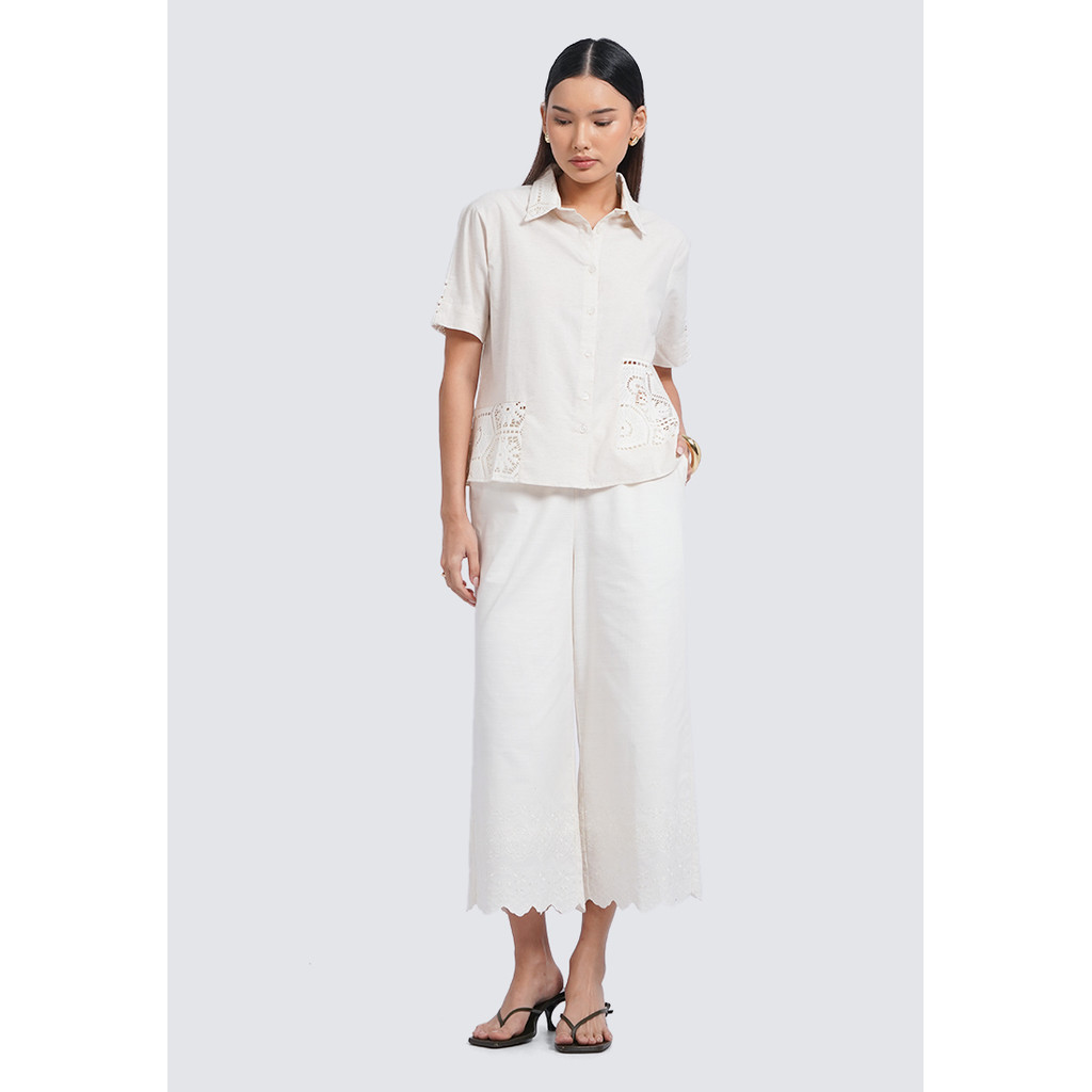 Et Cetera Eyelet Details Short Sleeve Blouse ECRU Original Best Seller Official Store