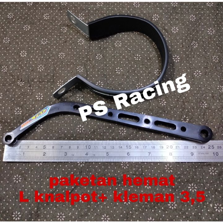 PAKET Kleman Knalpot Motor 3.5 inci Klem HITAM + Pangkon Knalpot L HITAM 25CM CNC