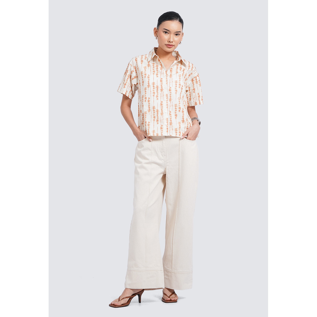 Et Cetera V-Neck Short Sleeve Embroidered Blouse BEIGE Original Best Seller Official Store