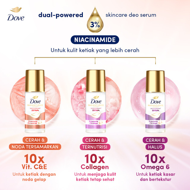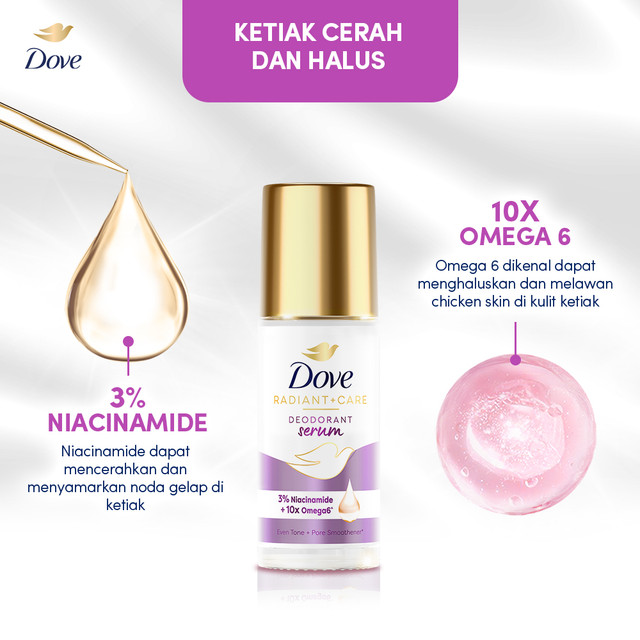 [Mall] DOVE DEODORANT SERUM ROLL ON 3 PERSEN NIACINAMIDE + 10X OMEGA 6, CERAHKAN DAN HALUSKAN KULIT KETIAK 45ML