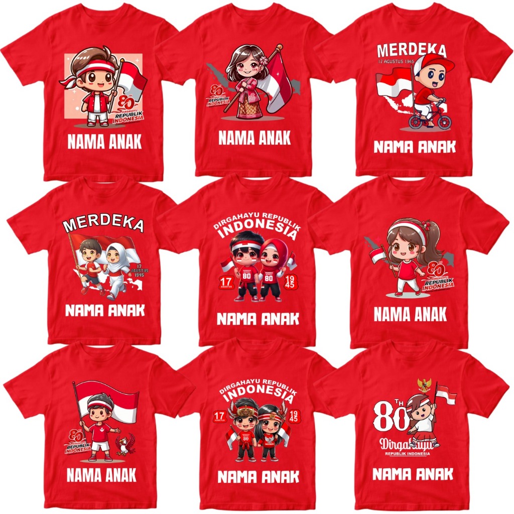 Free Nama Baju Kaos Distro Anak Model Kemerdekaan Indonesia Ke 80 Tahun 17 Agustus 1945 Merah Putih Laki Laki Perempuan