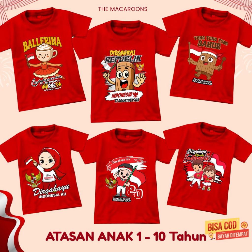 Baju Kaos Atasan Anak Model Kemerdekaan Indonesia Ke 80 Tahun 17 Agustus 1945 Merah Putih Laki Laki Perempuan 1-10 Tahun
