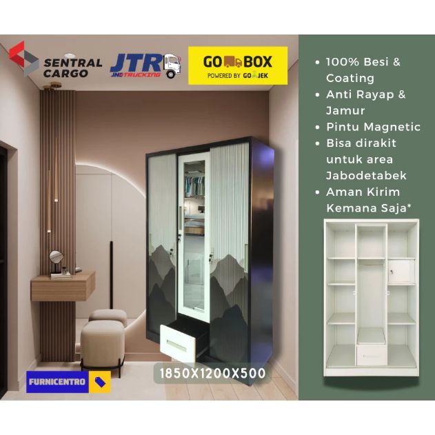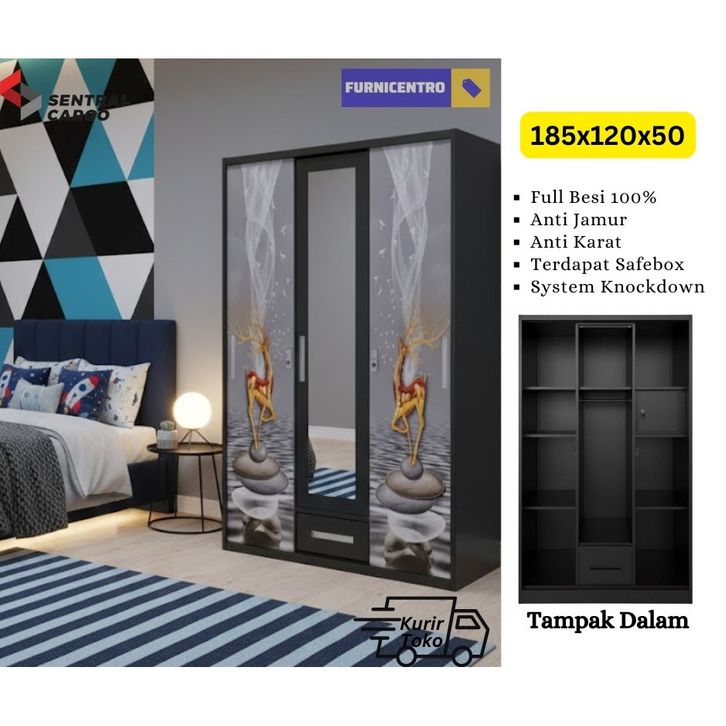 [Star] Lemari Pakaian Besi Sliding Lemari Pintu Sliding 3 Pintu Lemari Minimalis Anti Rayap Model Terbaru