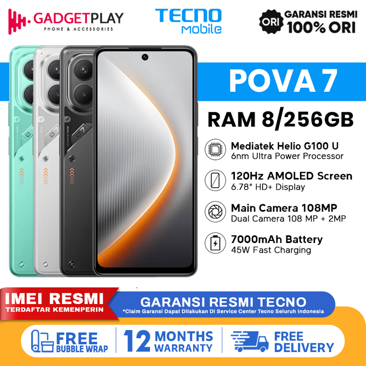 Tecno Pova 7 [8GB+256GB] - Garansi Resmi 1 Tahun.
