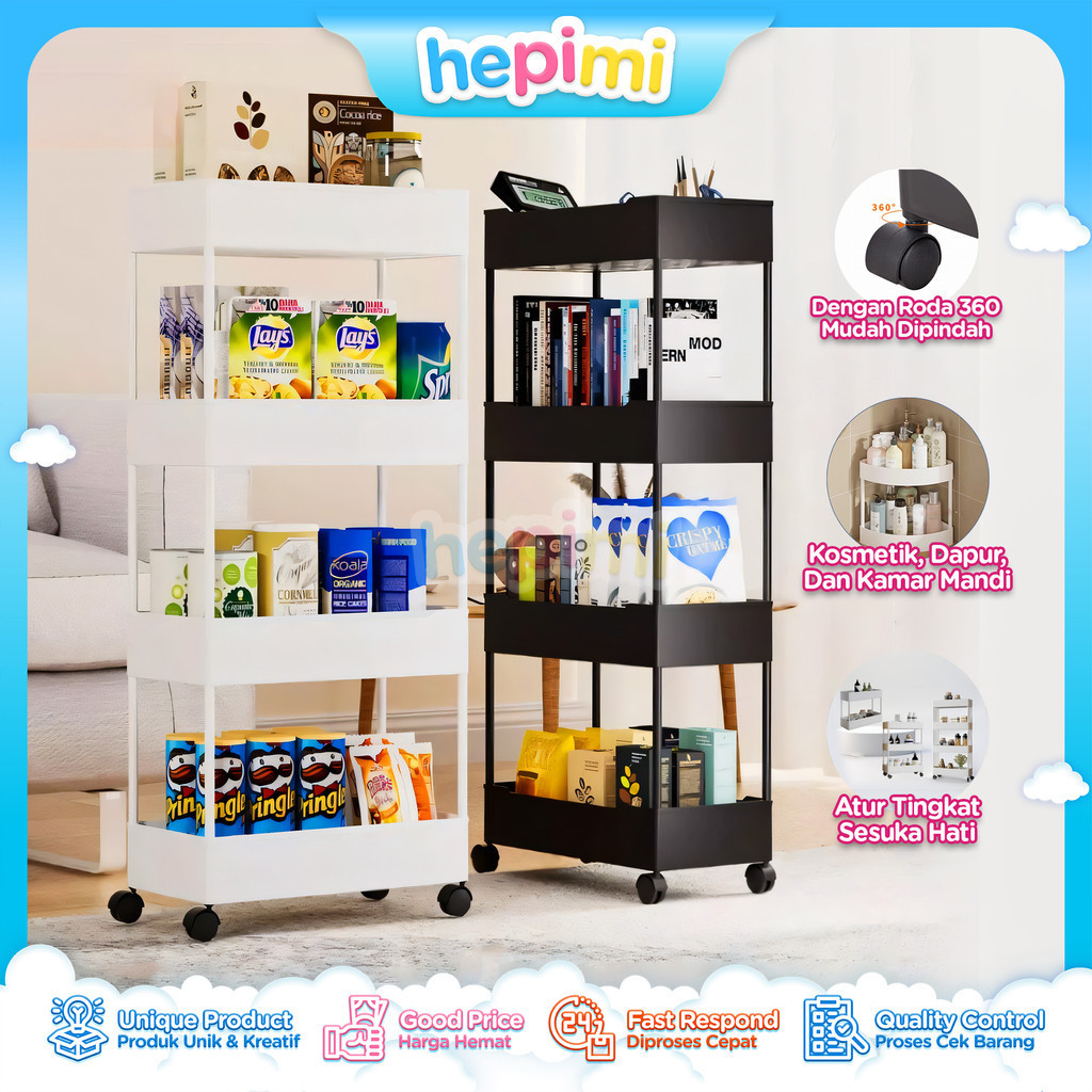 Rak plastik Serbaguna | Persegi Panjang / Sudut 4 Susun | Tempat Penyimpanan | Rak Toilet Kamar Mandi | Rak Dapur