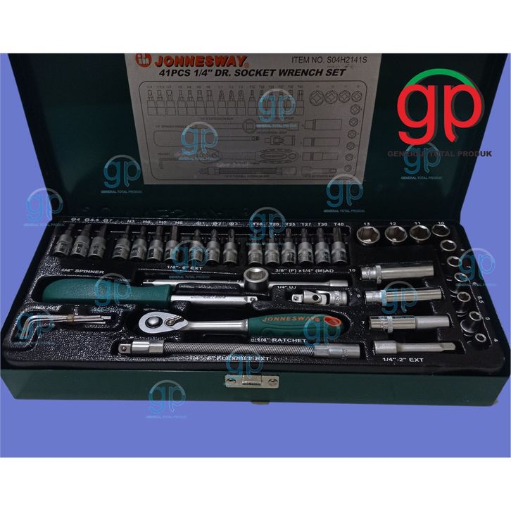 Jonnesway 41Pcs 1/4"DR Socket Wrench Set S04H2141S Kunci Shock Set Kunci Sok Set Industrial Heavy Duty