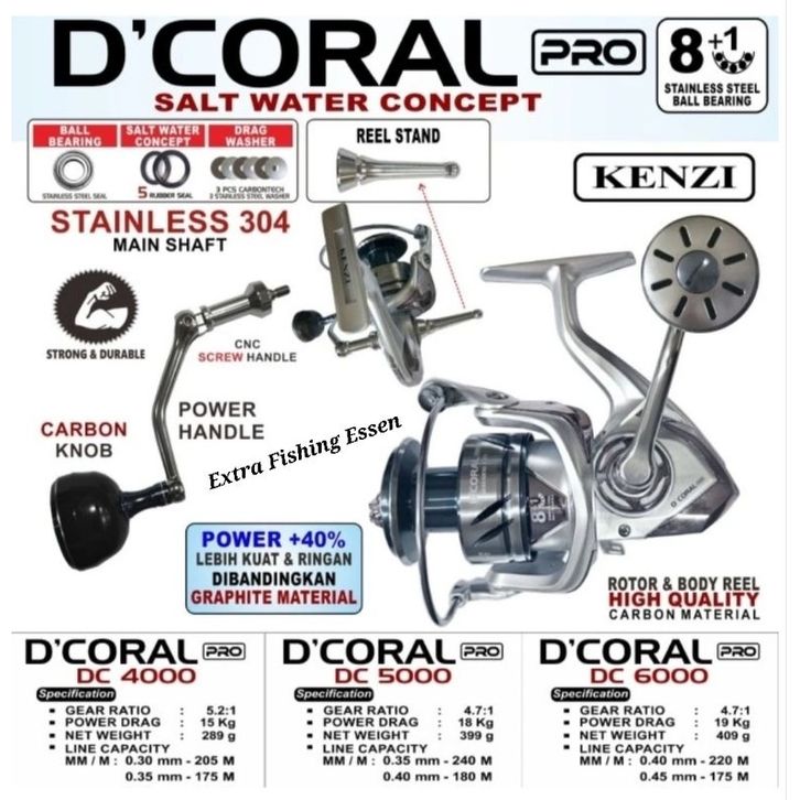TERLARIS REEL KENZI D CORAL 1000 2000 3000 4000 6000 SALTWATER CONCEPT DAN POWER HANDLE