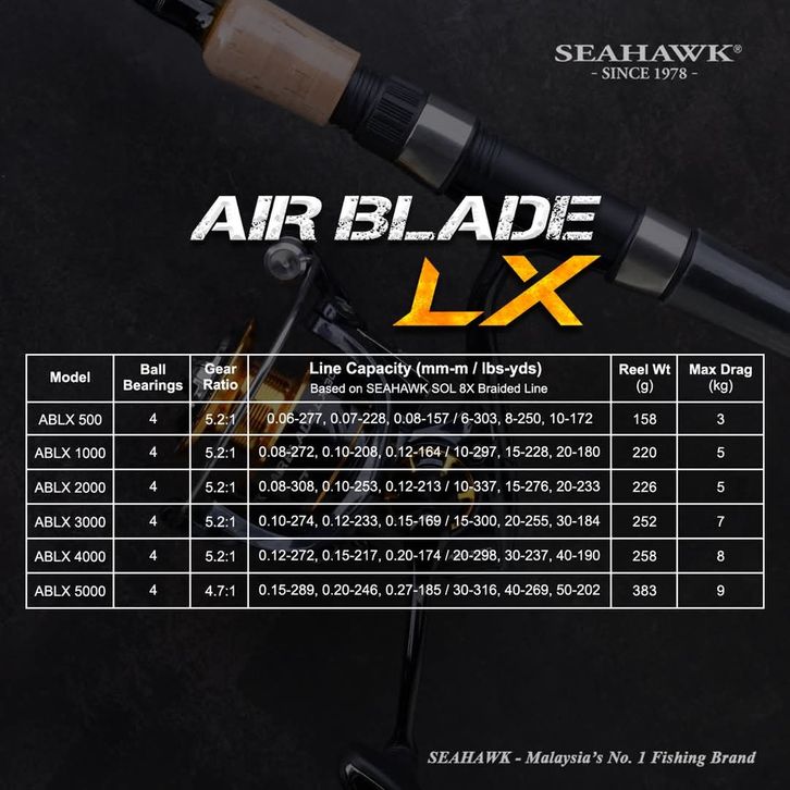 TERLARIS Seahawk Spinning Reel Air Blade LX 500,1000,3000,4000,6000