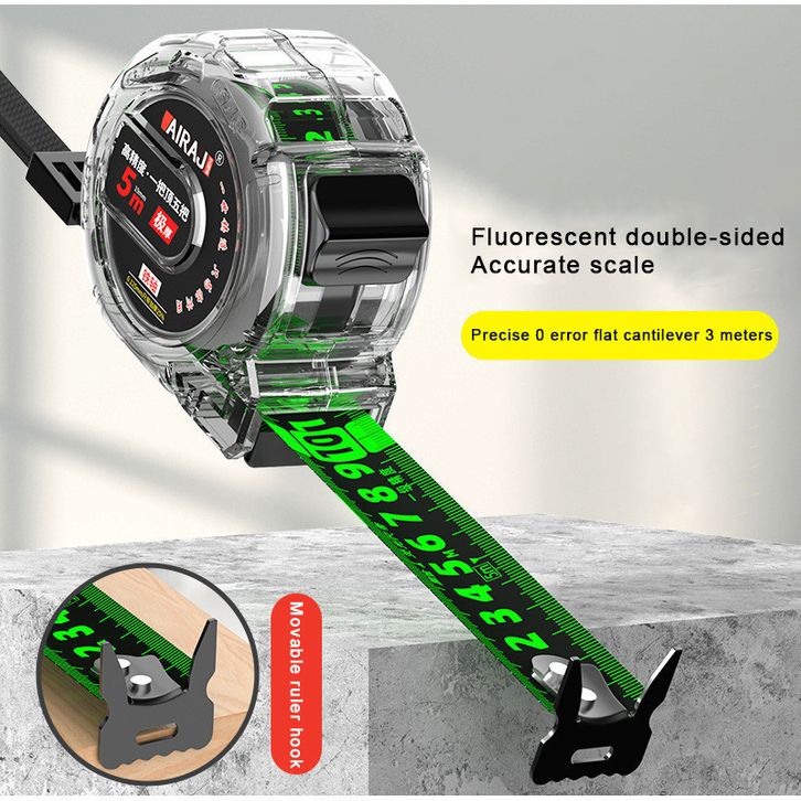 SUBOGDG 1m Penggaris neon berteknologi hitam meteran anti karat dengan pita pengukur impor menebal