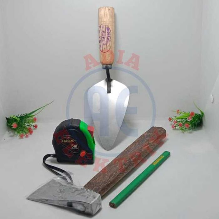Hemat Kapak + Sendok Semen Galur Kotak Dan Baja Gagang Kayu + Meteran Tukang / Meteran Karet 5 Meter