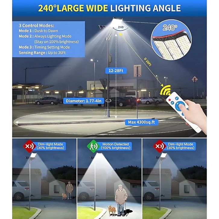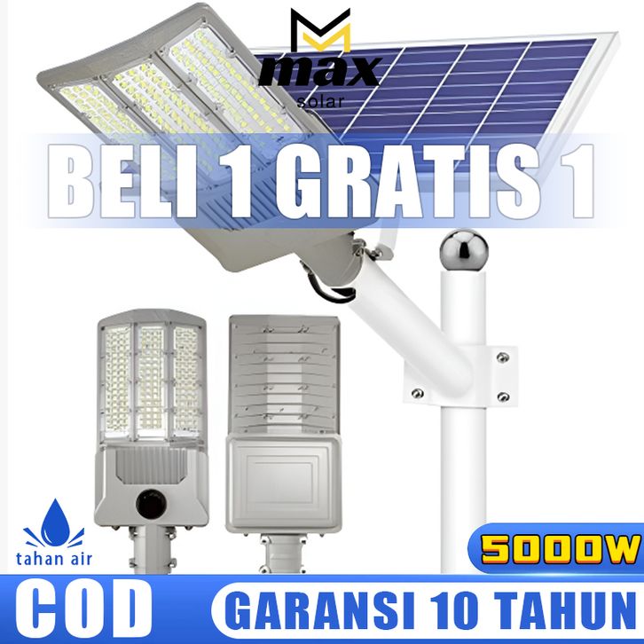 Lampu Solar LED 5000W Penerangan Jalan Perumahan & Taman - Sensor Gerak 360° + Baterai 45000mAh Tahan 7 Hari