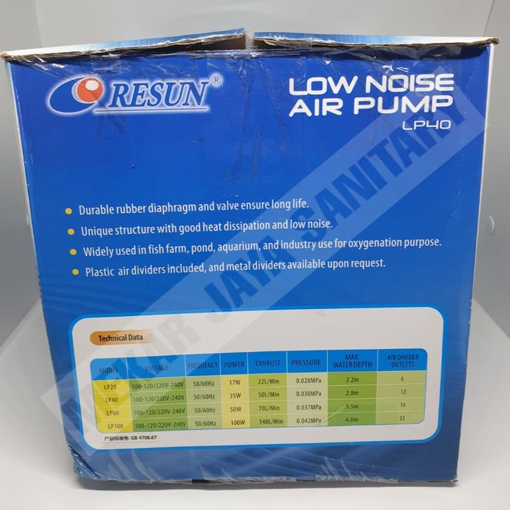 Airpump Pompa Udara Low Noise Resun LP40 LP-40 LP 40 Kolam Air Aerator Kolam Aquarium