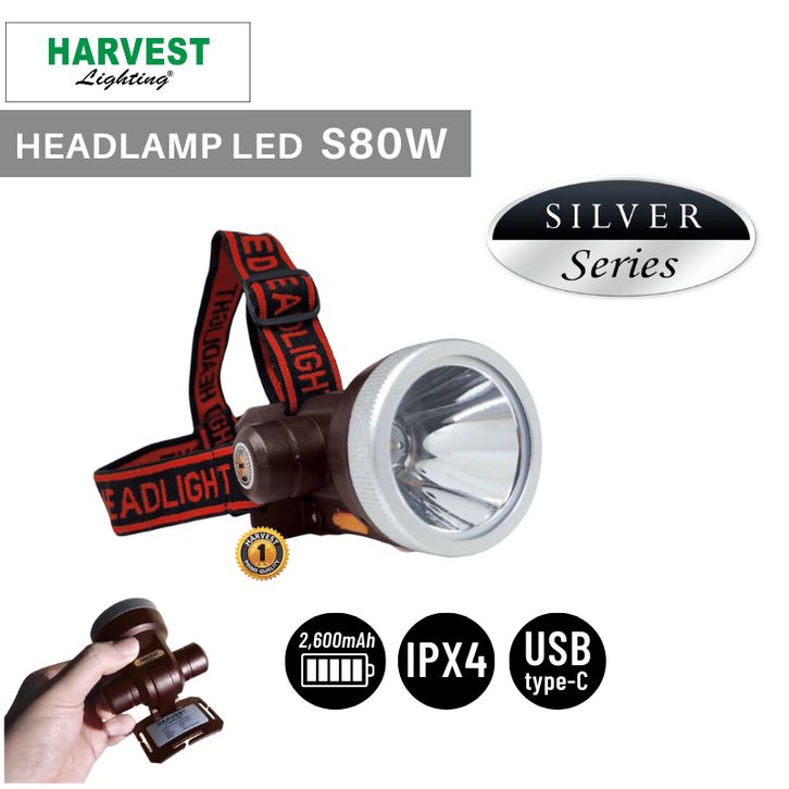 Harvest Lighting Headlamp S80W Silver Series Senter Kepala LED 2600mAh Lampu Emergency Travel