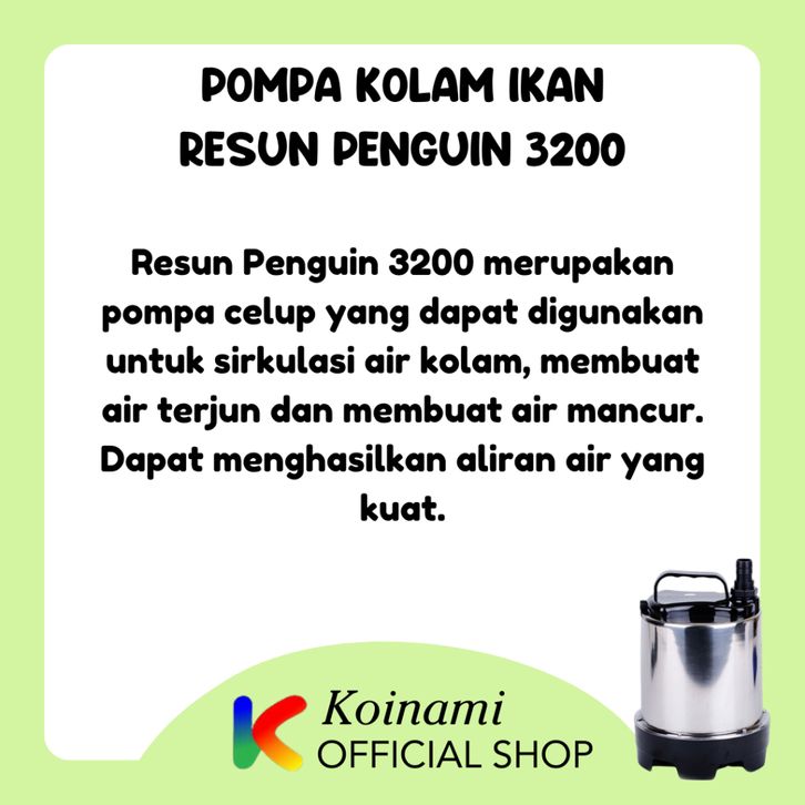 RESUN PENGUIN 3200 / pompa kolam ikan koi / sirkulasi air / filter 3200 liter 3.2 meter 80watt