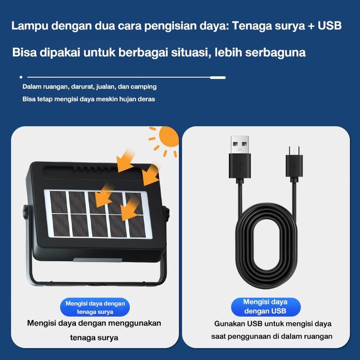 Lampu Emergency Tahan 24 Jam【Garansi 10 Tahun】Lampu Tenaga Surya Lampu Tenaga Surya Fungsi Pengisian Daya Ponsel Lampu E