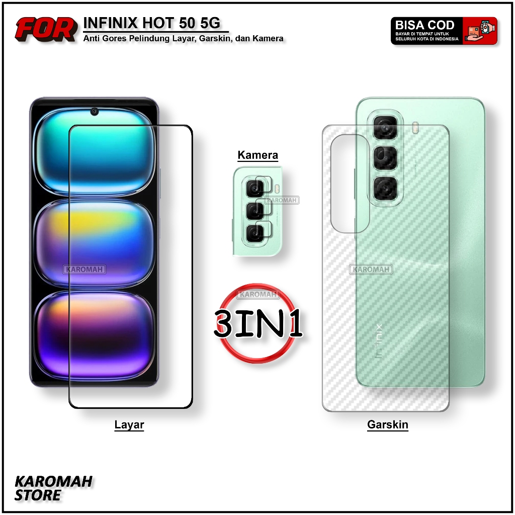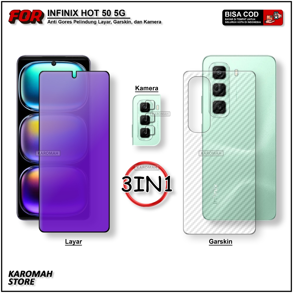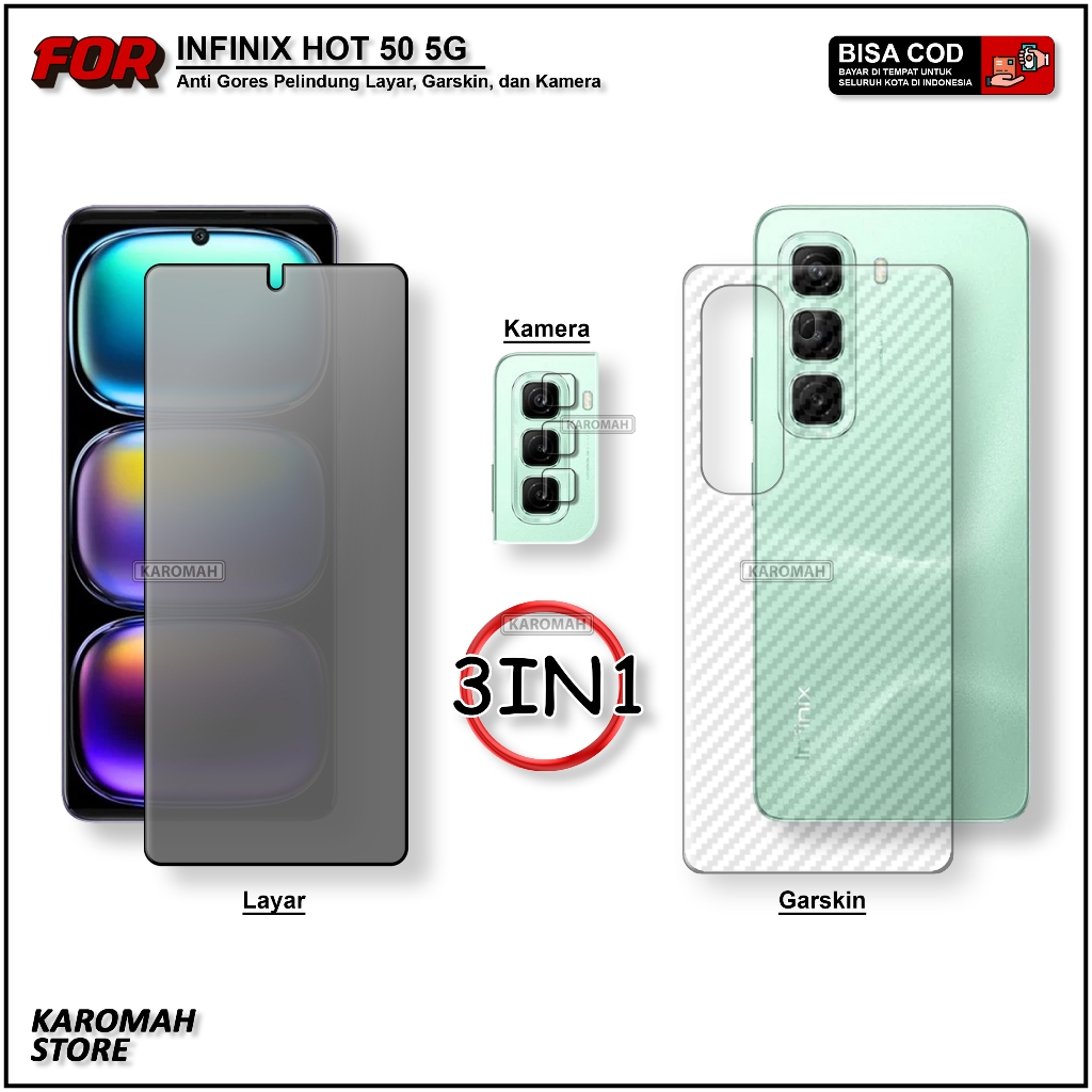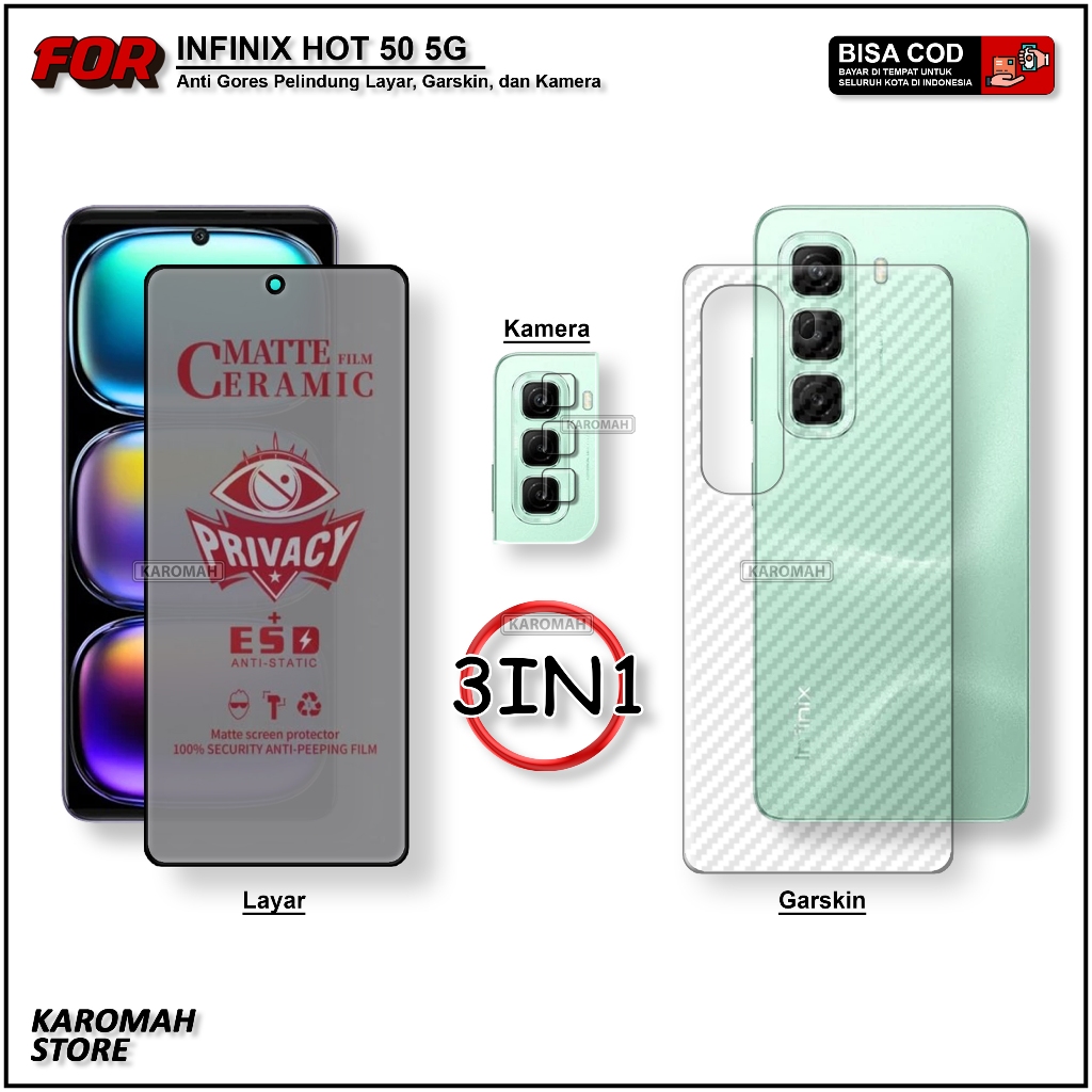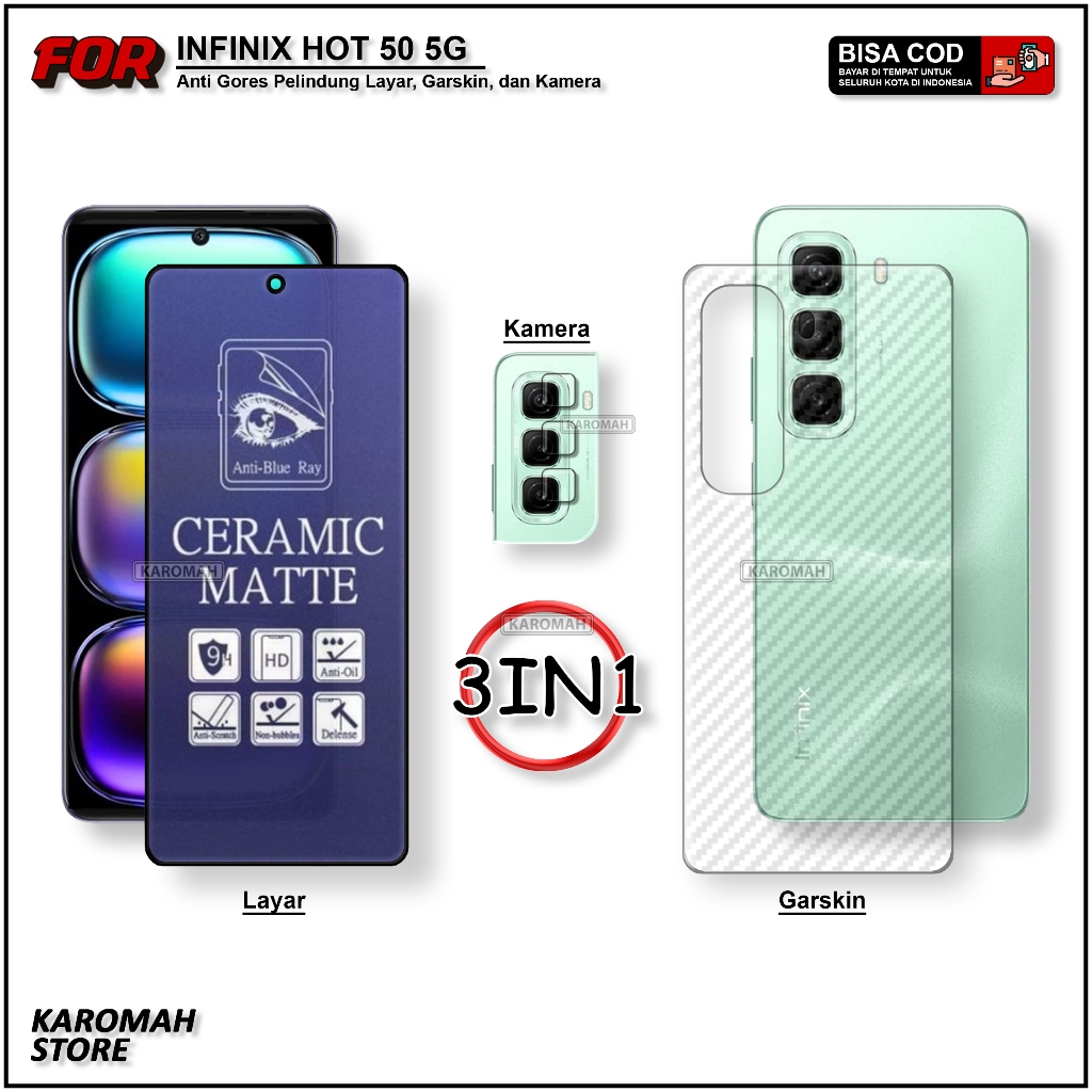 PAKET 3IN1 ANTI GORES INFINIX HOT 50 4G 5G 50 PRO 4G 50I TEMPERED GLASS AG MATTE LAYAR FULL COVER SCREEN