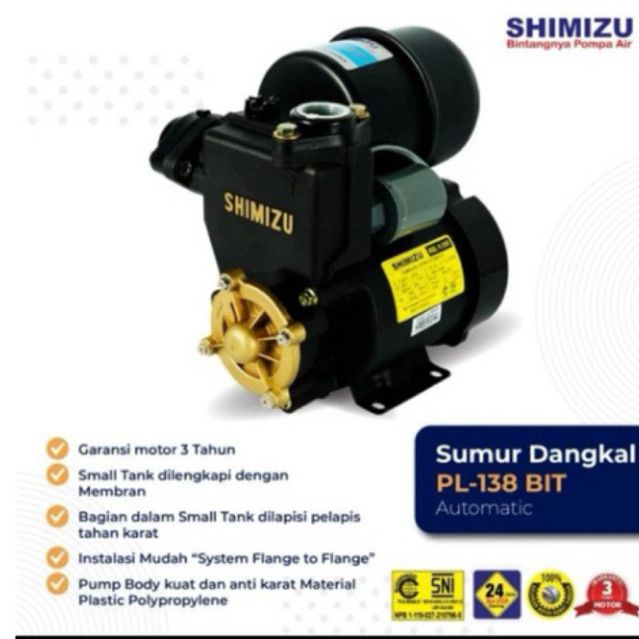Shimizu Pompa Air Sumur Dangkal PL138BIT Automatis 125Watt - Pompa Air Simizu PL-138Bit