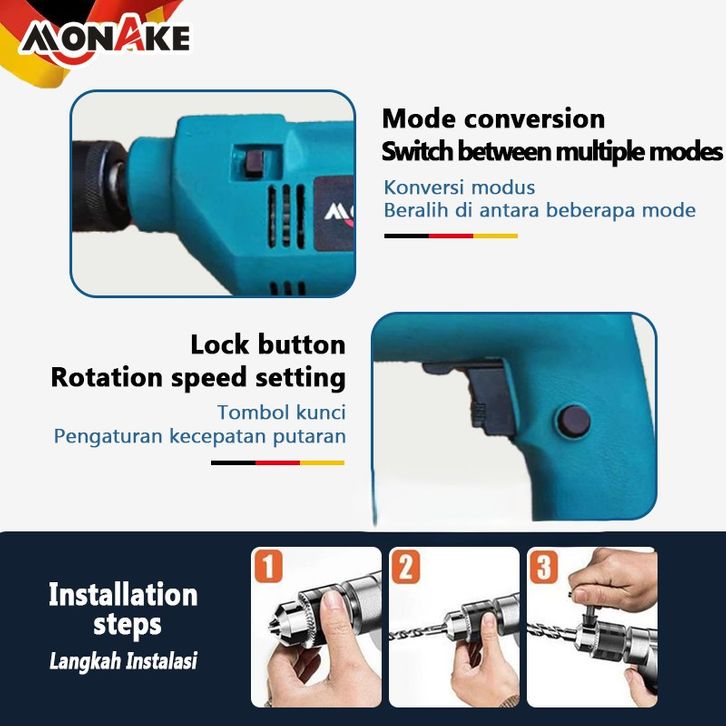 MONAKE MESIN BOR 13MM IMPACT DRILL SET /BOR BETON TEMBOK SET 28PCS Tangan Listrik SET - MK650T
