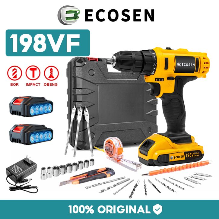 ECOSEN Bor Listrik Mesin Bor Bor Tanpa Kabel Bor Tangan Elektrik Drill Bor Impact Cordless ECO72