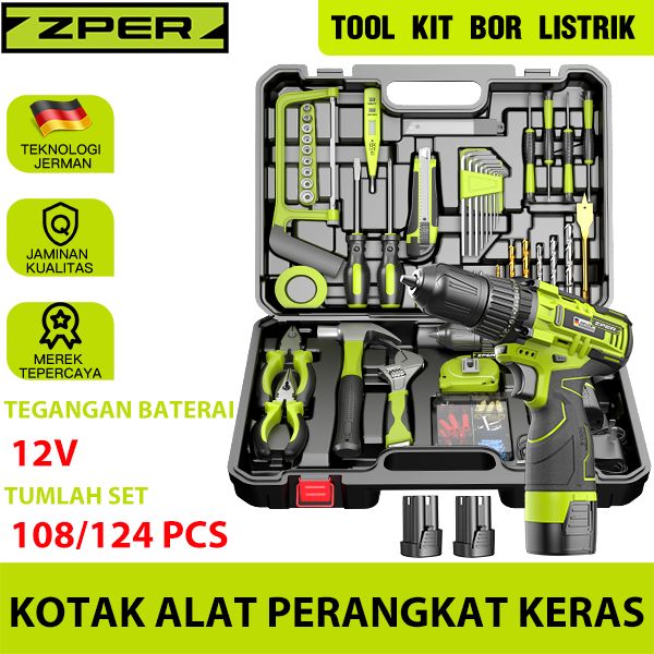 ZPER Satu Set Alat Perkakas Tool Box Besar Mesin Bor Baterai Cordless Tang Obeng Palu Kunci Pas