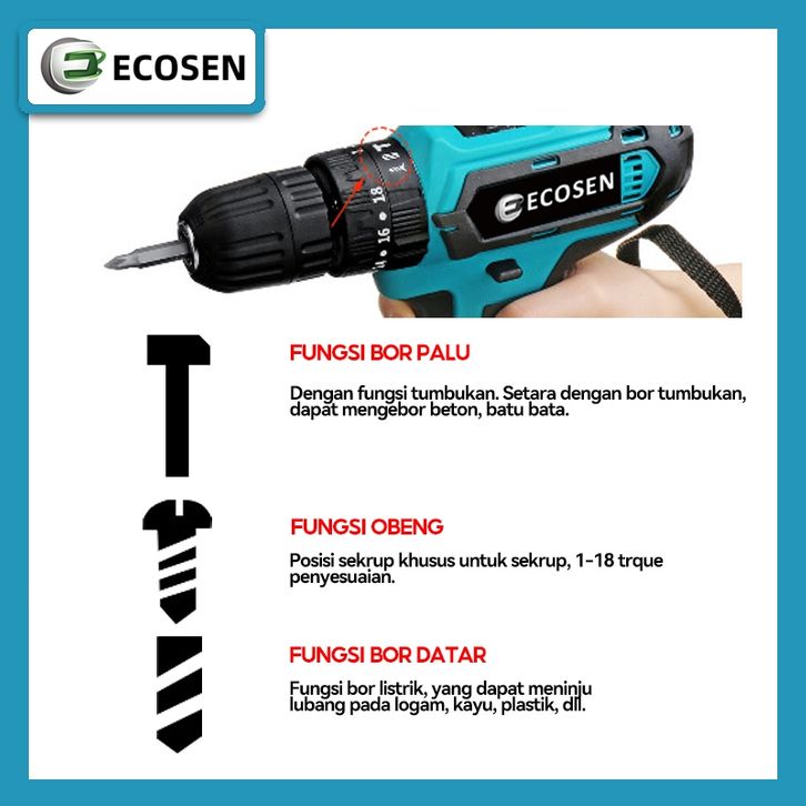 ECOSEN 699V Mesin Bor Baterai Tangan Cordless Drill Battery Bor Cordless Power Drills Kit 2 Baterai