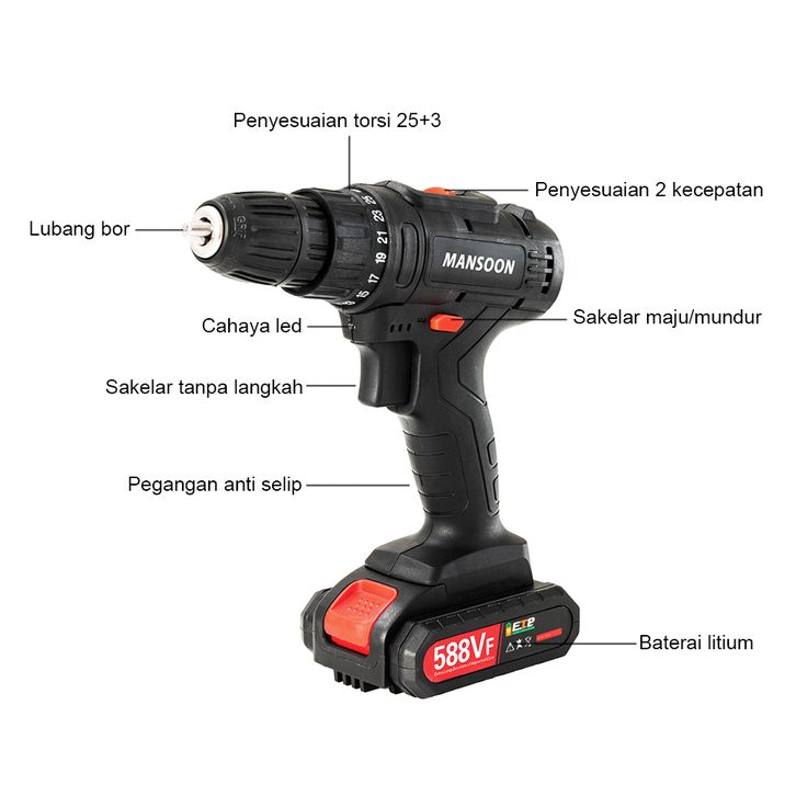 MANSOONMesin Cordless Screwdriver Multifunction Electric Screwdriver Bor Cordless Drill Obeng