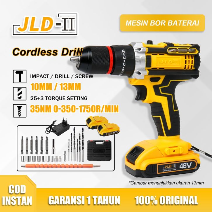 JLD-II Mesin Bor Baterai 48Vf Bor cas 2baterai 13mm/10mm Bor Impact Fullset Bor Tanpa Kabel Bor