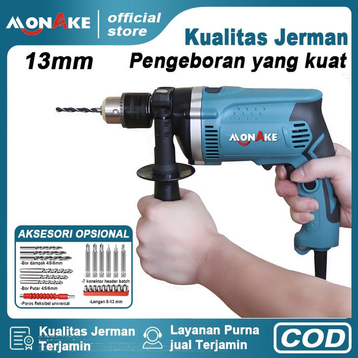 MONAKE German Tool Mesin Bor 13mm Impact Drill Tangan Listrik Electric Drill Koper Set Besi Bor