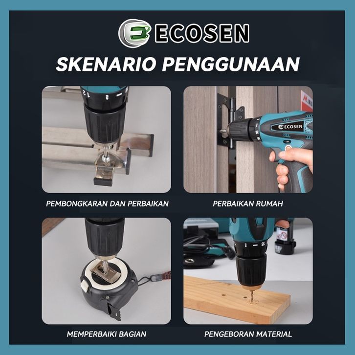 ECOSEN Mesin Bor Baterai Tangan 98V Bor Listrik Bor cas Bor mini Bor portable Bor Portable Obeng