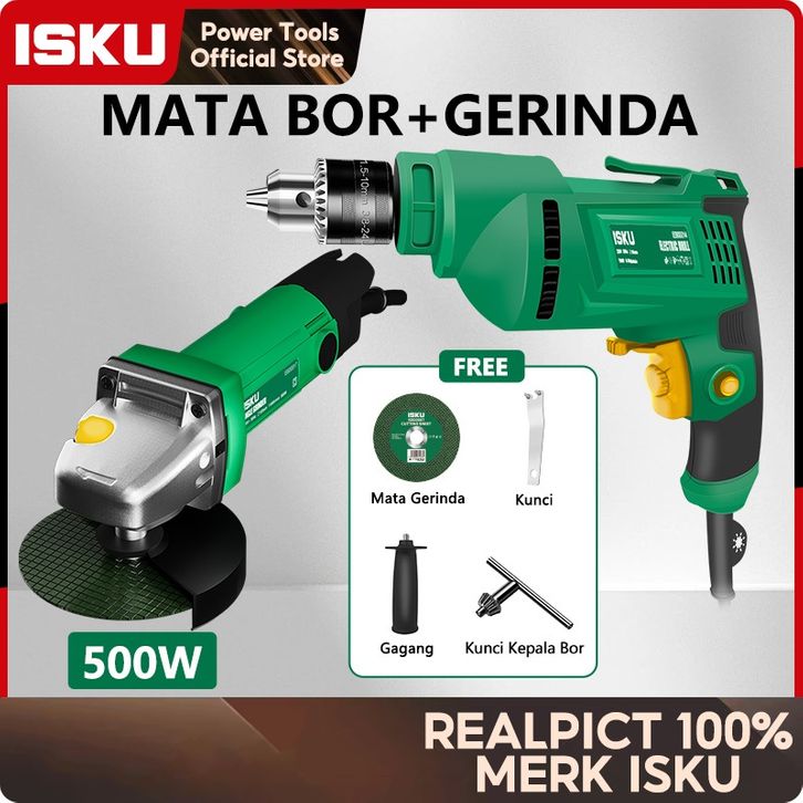 ISKU Mesin Bor Set 700W 220V Dan Mesin Gerinda Tangan